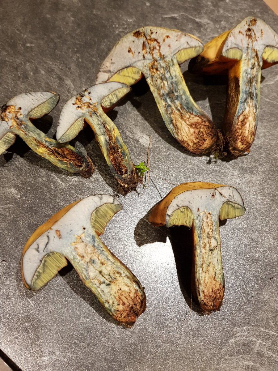 1. Sind vermutlich madige Netzhexen, standen massenhaft in einer Grünanlage, bei einer Joggingrunde entdeckt (ein alter Mann prophezeite mir direkt, dass Pilze die sich blau verfärben extrem giftig sind):
