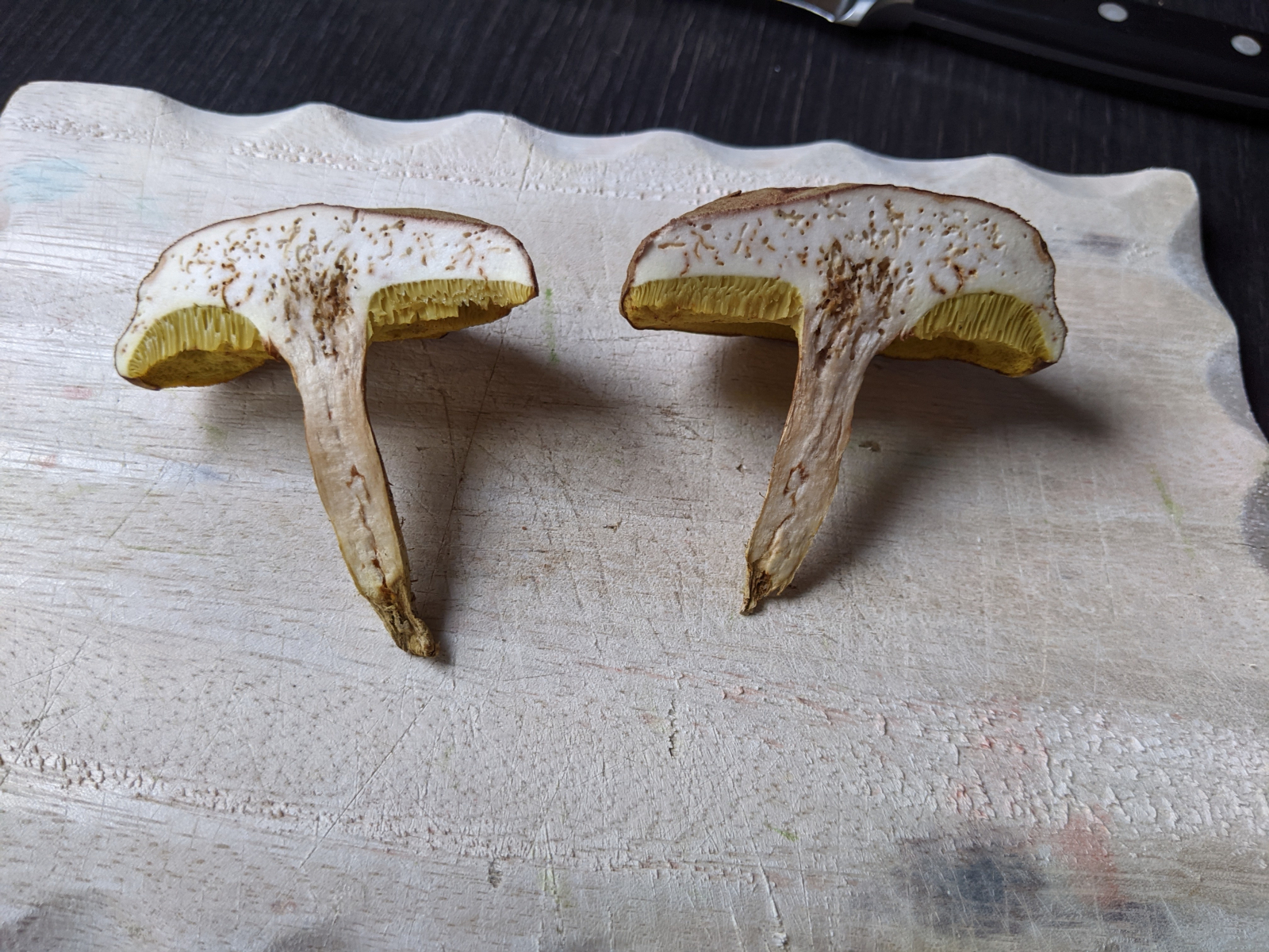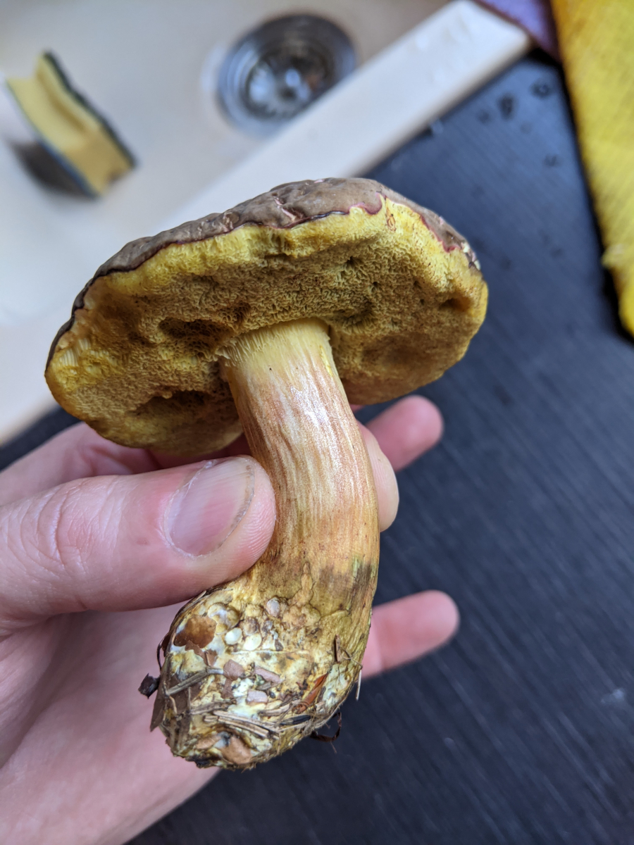 Hi, die Hexenröhrlinge haben rote Röhren, dieser hier hat gelbe. Könnte das ein unschöner Schönfuß sein?