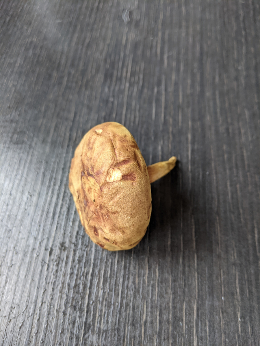 Jetzt passt die Ziegenlippe nicht ganz, man sieht ja dieses dunkle Stielnetz. Aber bei allen "ähnlichen" Pilzen die ich finde, z.B. auch beim braunen Filzröhrling, steht bei den Röhren "ausgebuchtet", und das kann ich hier beim besten Willen nicht sehen. Daher meine Frage: was habe ich denn hier vielleicht gefunden?