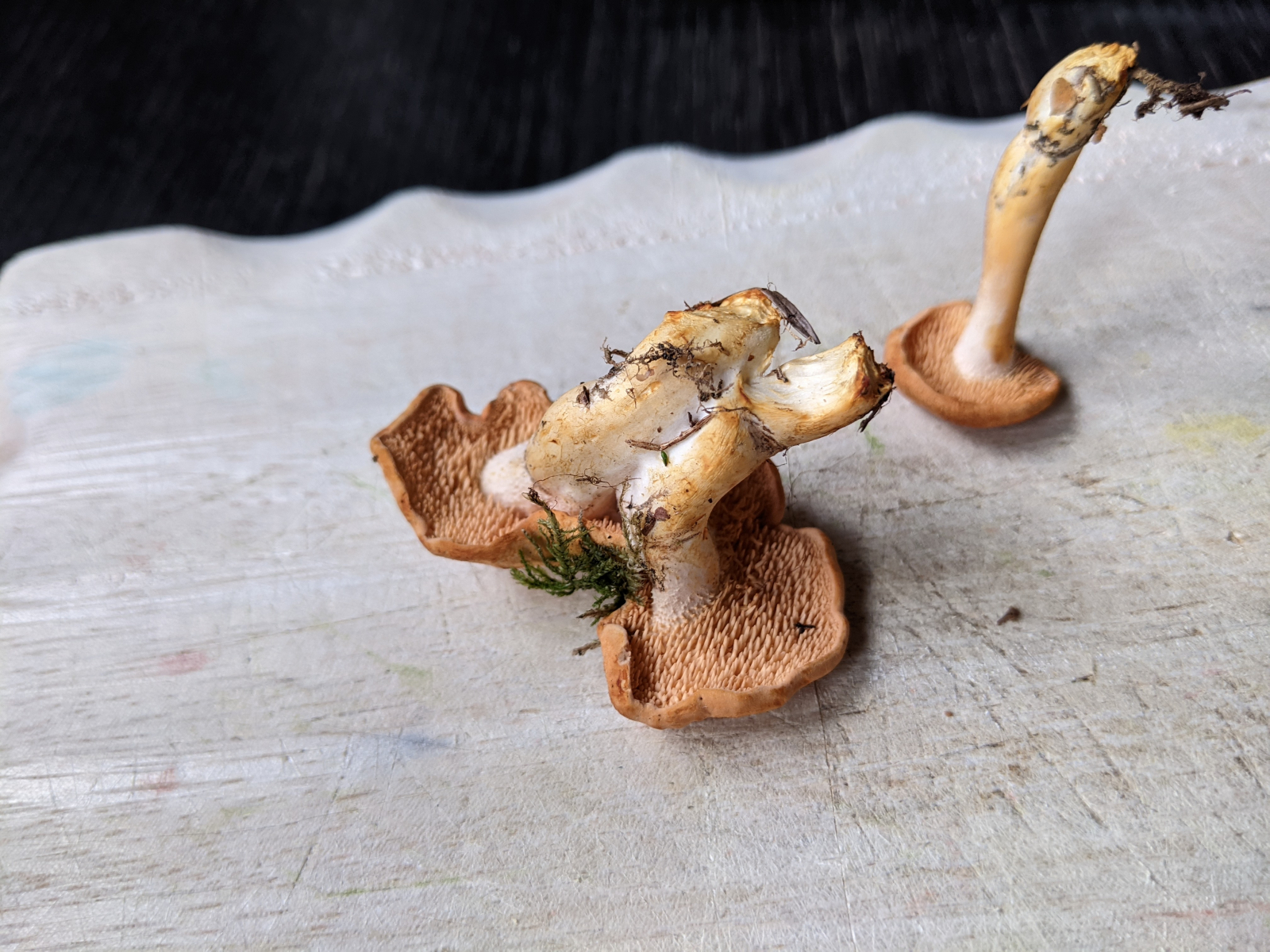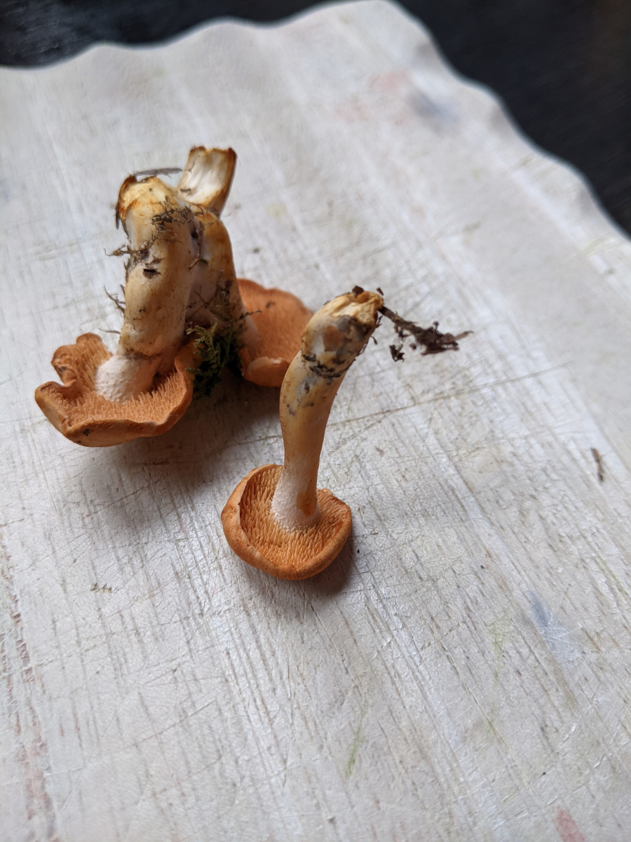 Die standen direkt unter einer Birke, da war aber noch allerhand anderes an Gestrüpp, ich war beim Sammeln daher erst Mal von irgendeiner Art Birkenpilz ausgegangen.
