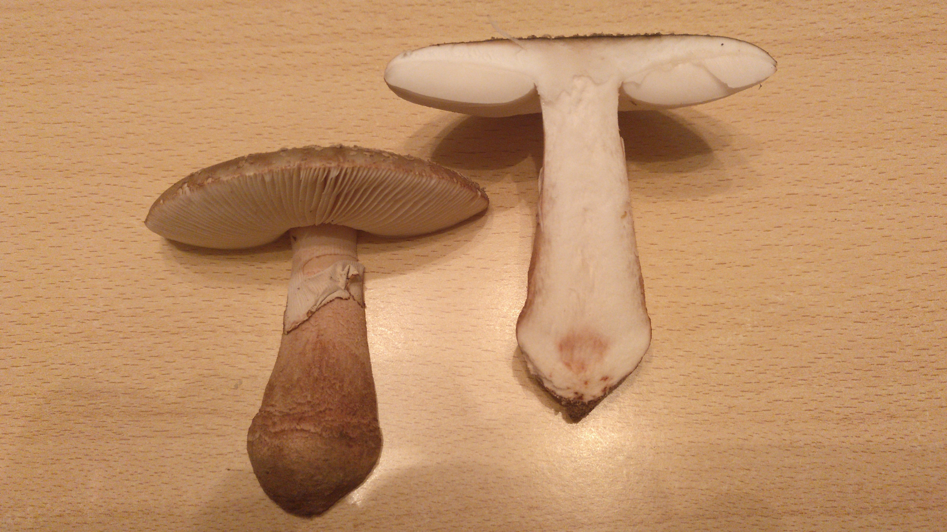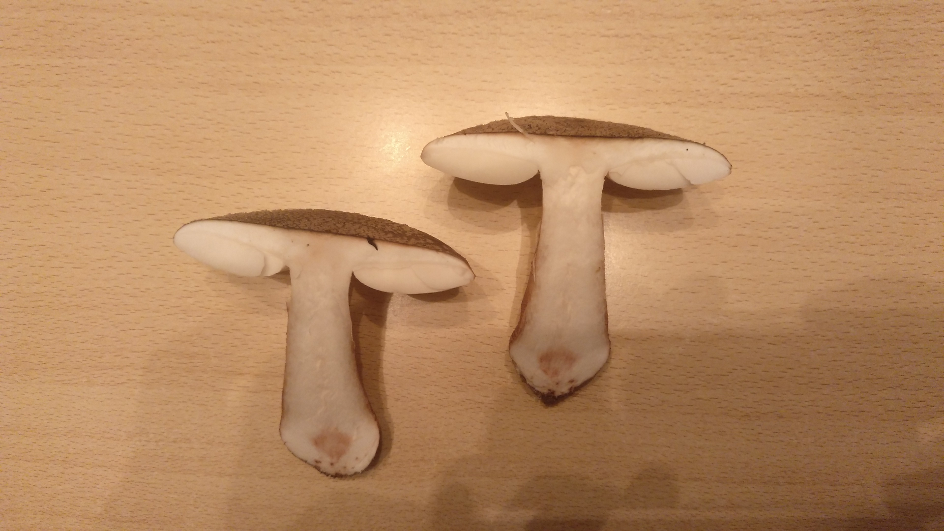 Bei zwei Exemplaren wurde ich aber etwas stutzig, der Stiel war relativ dick, schon fast knollenähnlich (die kommen auch nicht in den Topf heute).