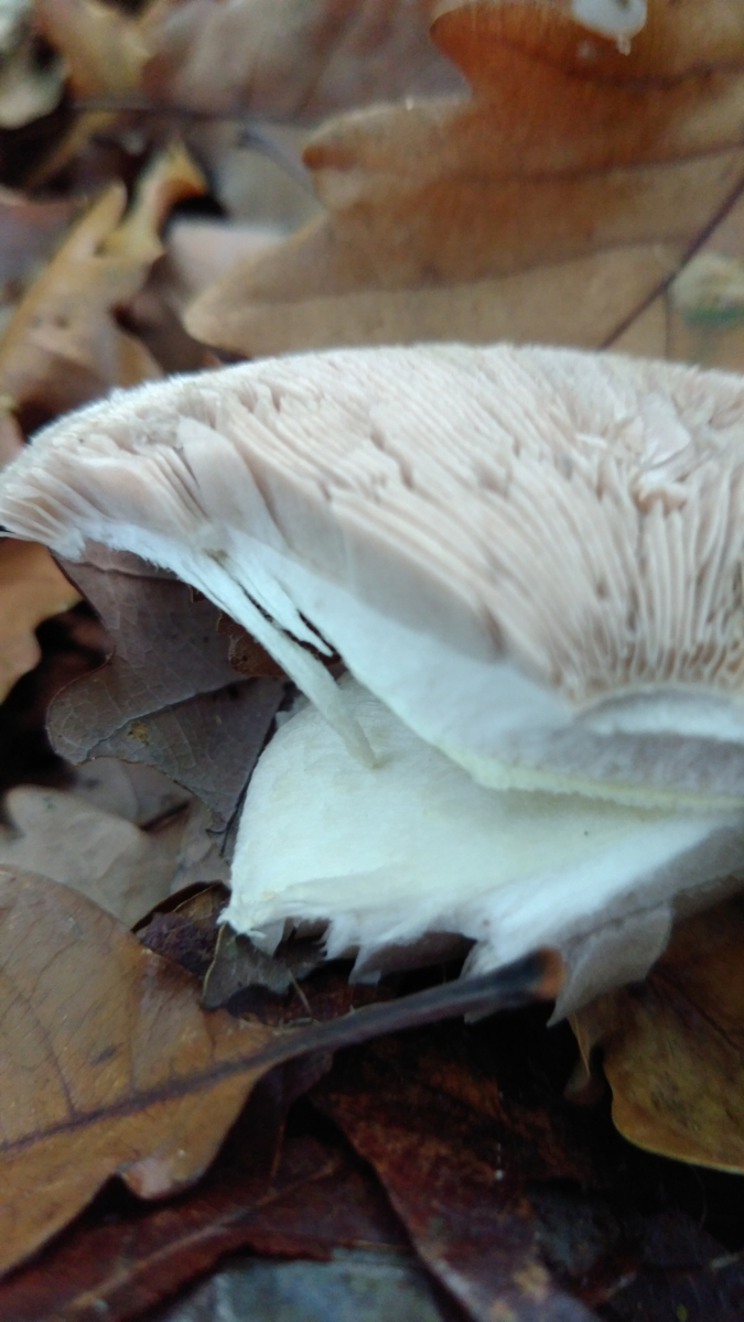 Nein gab noch kein Frost. Zudem sieht der Stiel an der Nebelkappe doch auch anderst aus. Von unten deutlich abgesetzte Lamellen. Hier ist an der Stielbasis bis aussen nichts von Lamellen zu sehen.. Siehe bild von dem abschnitt.. Das ist die unterseite..