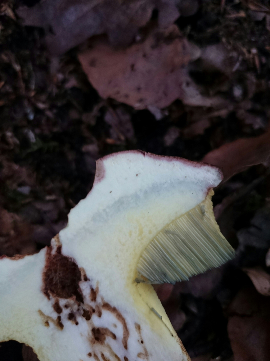 abziehbar, darunter leicht rötlich, biegsame Lamellen.