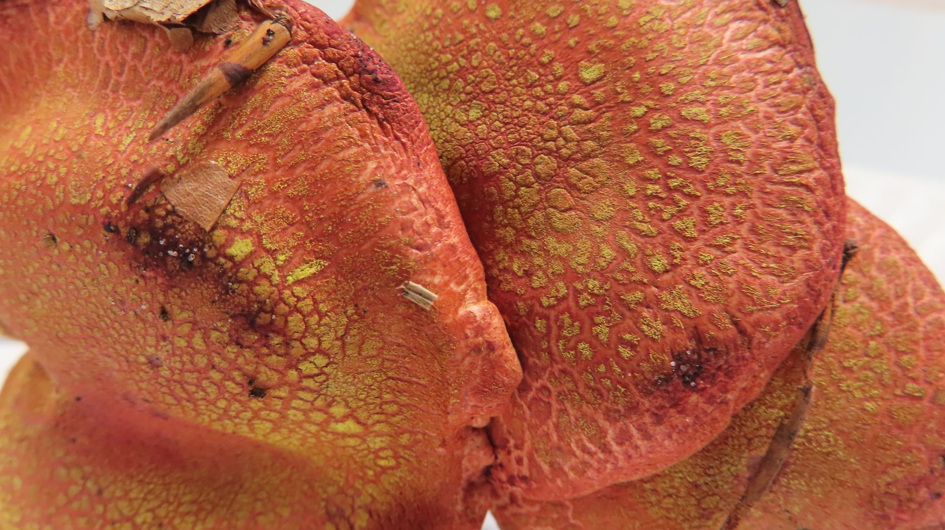 Ich war nicht sicher ob die kleinen Noppen (die Stacheln der Buchecker) keulenförmige Pilzchen sind, oder ob es um die weißen Partikel geht (da habe ich etliche winzige weiße Becherchen in Betracht gezogen).