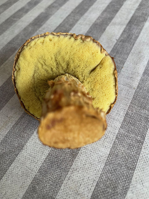 An einer Stelle (und auch wirklich nur dort, kleines Waldstück ca 3-4 ha Hochwald Kiefer,an der ich seit 35 Jahren regelmäßig Maronen, Steinpilze und Pfifferlinge finde, habe ich erstmals umletzten Jahr und dann heute wieder diesen Pilz in großen Mengen gesichtet. Hutfarbe wie Steinpilz, gelber Schwamm, hellbrauner Stil, innen gelb. Um was handelt es sich? Bin völlig ahnungslos!