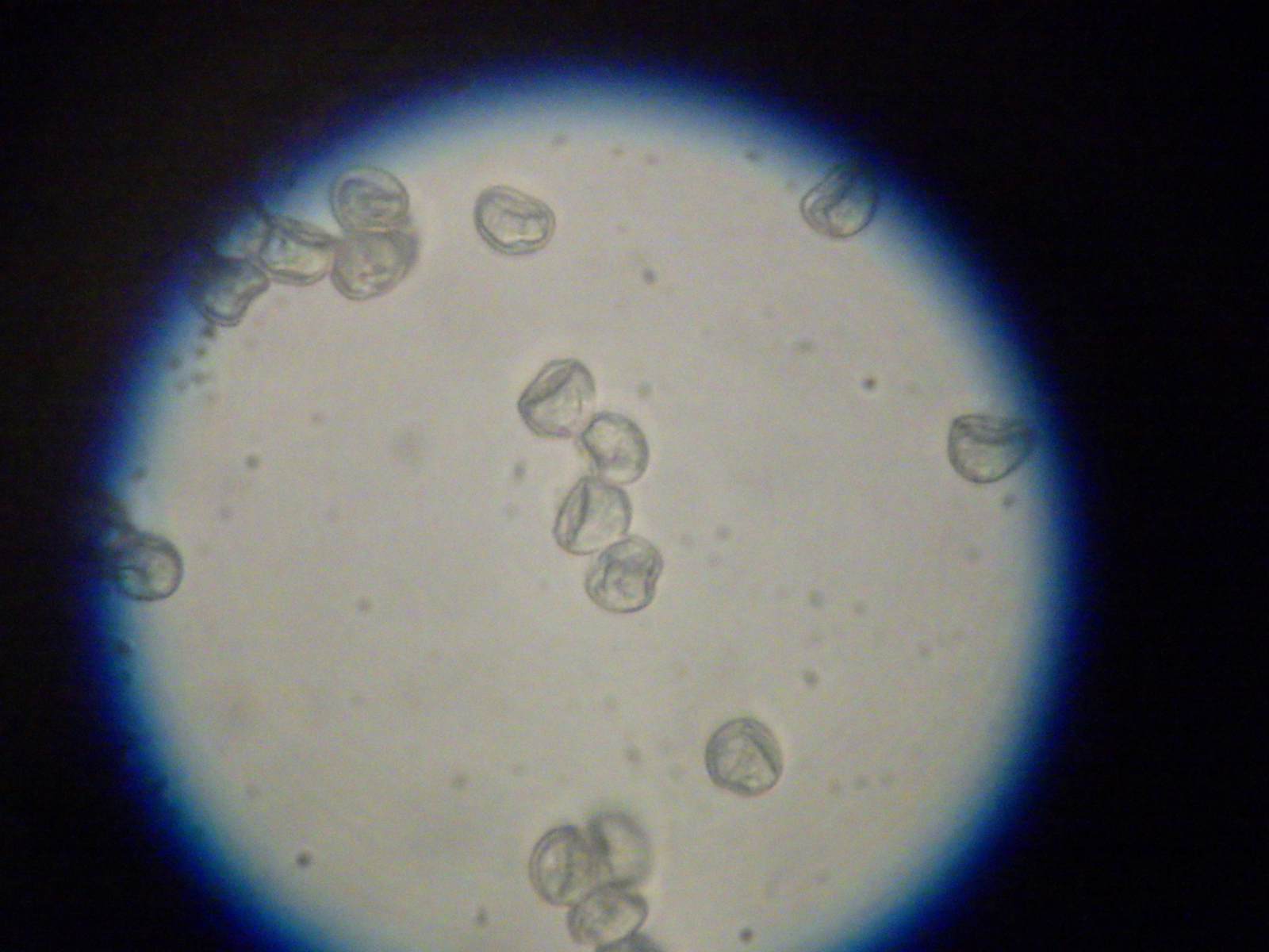 Vergrösserung mit Alkohol: Sporen sind oft Kartoffel-ähnlich, nicht ganz rund