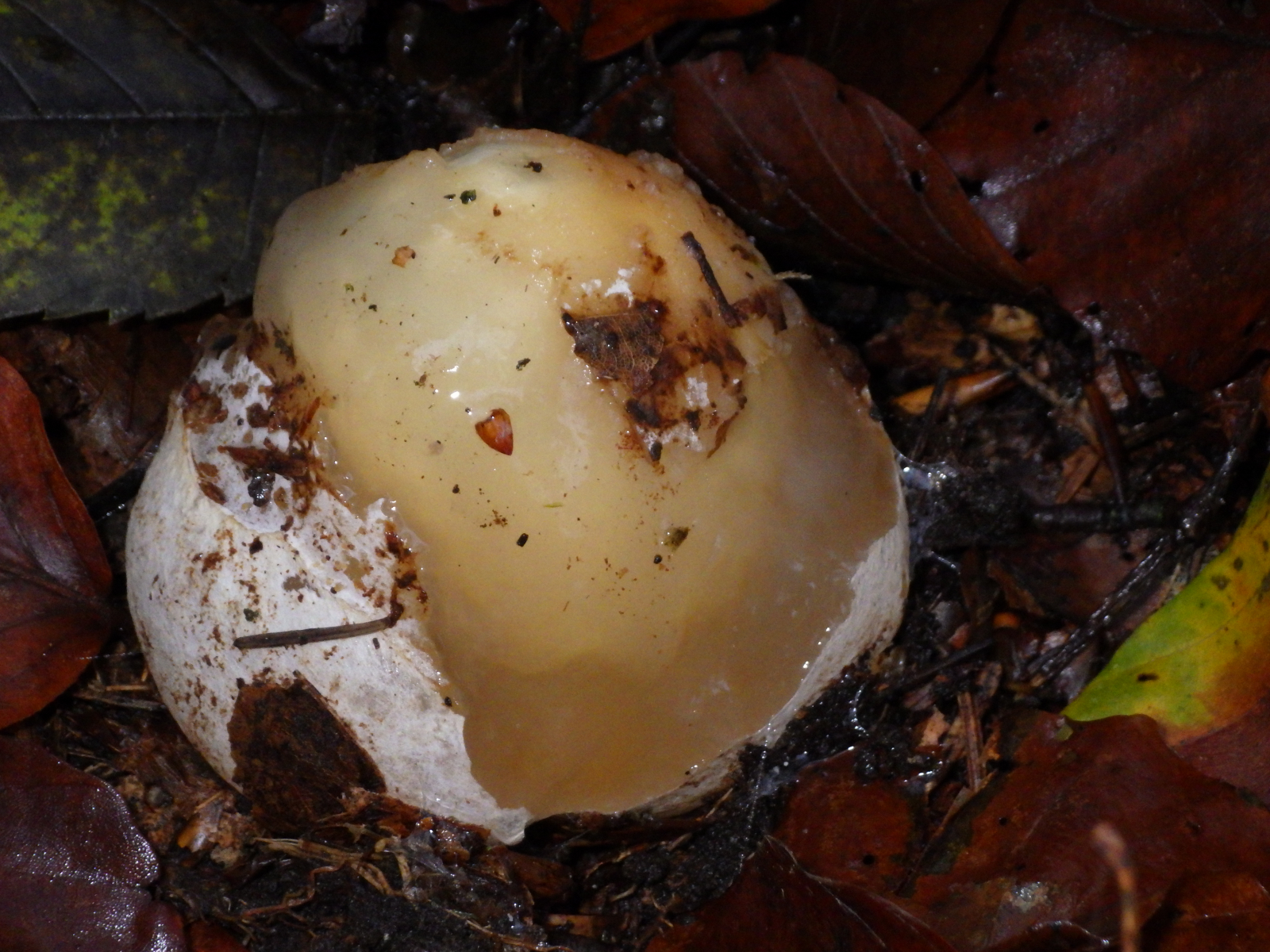 Natürlich aufgeplatzte Peridie, in diesem Stadium sieht das Hexenei wirklich wie ein aufgeschlagenes Hühnerei aus!