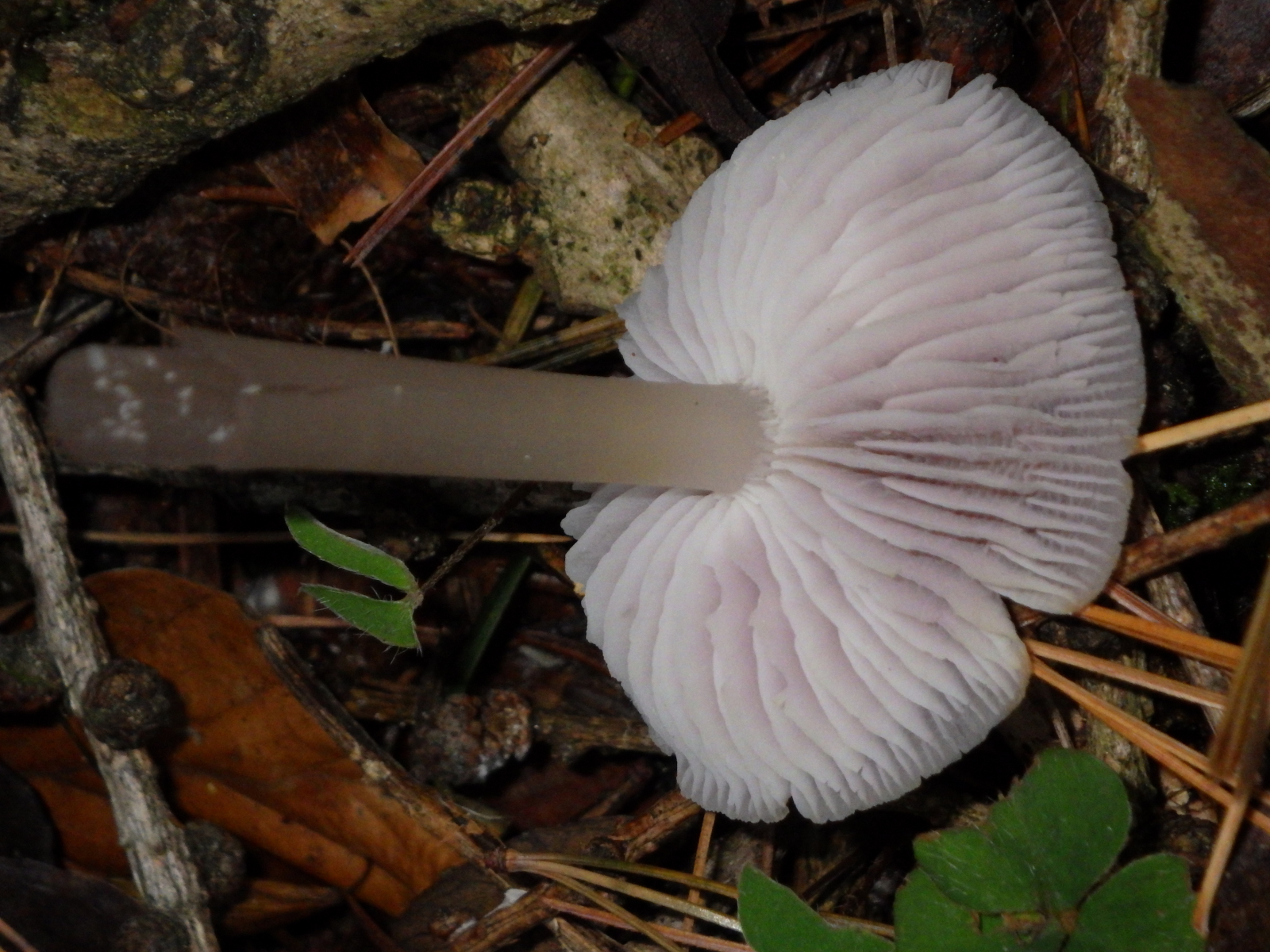 4) Rettich-Helmling? Einzelner Pilz mit sowohl violettem Hut und Lamellen, um 6-7cm, der Stiel war hohl