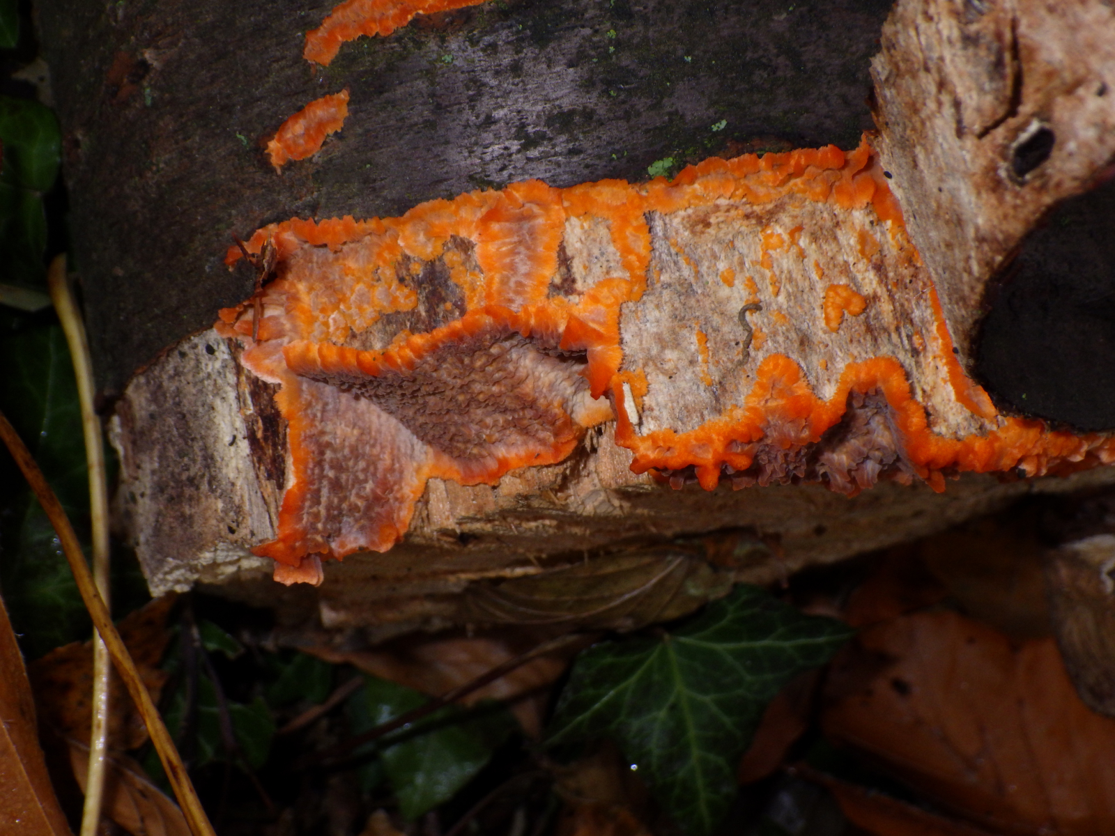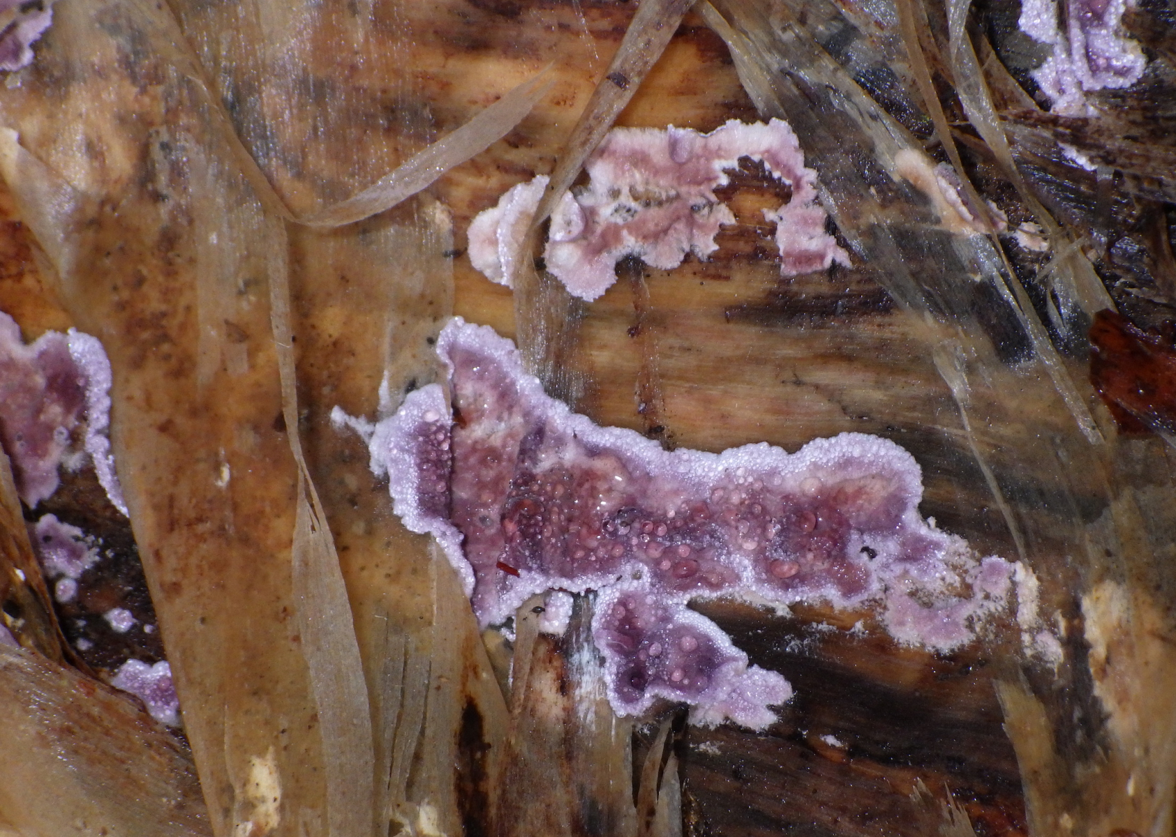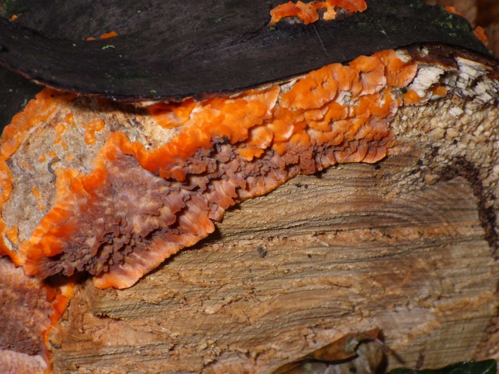 Besten Dank für die Bestätigung, die Pilzgruppe am Totholz war wirklich sehr farbenfroh, es ist schon bewundernswert, was die Natur alles hervorbringt. Unweit dieser Pilze hatte es an einem anderen Totholz auch noch eine weitere Schönheit, einen Violetten Knorpelschichtpilz Chondrostereum purpureum mit Gutationstropfen!