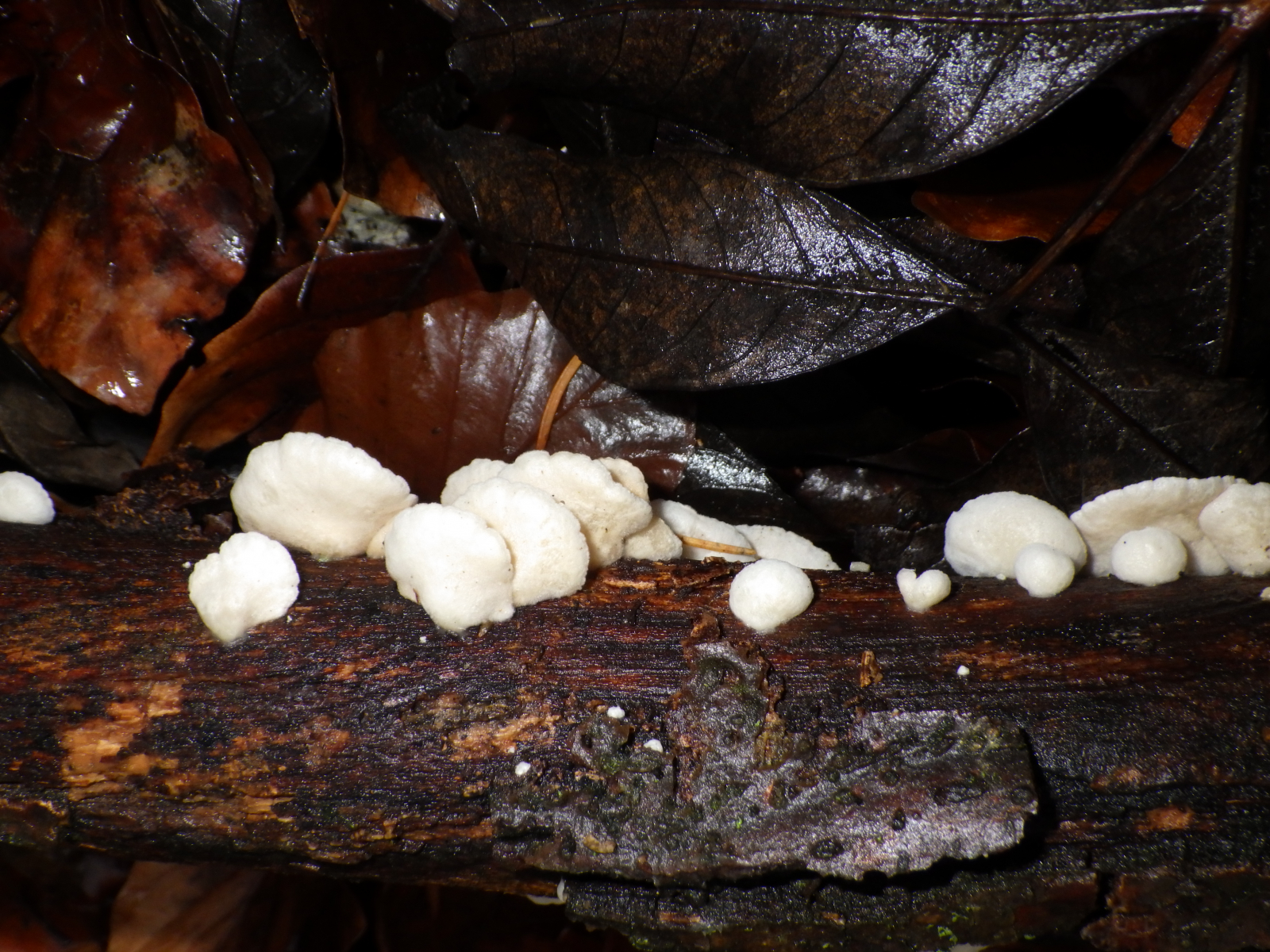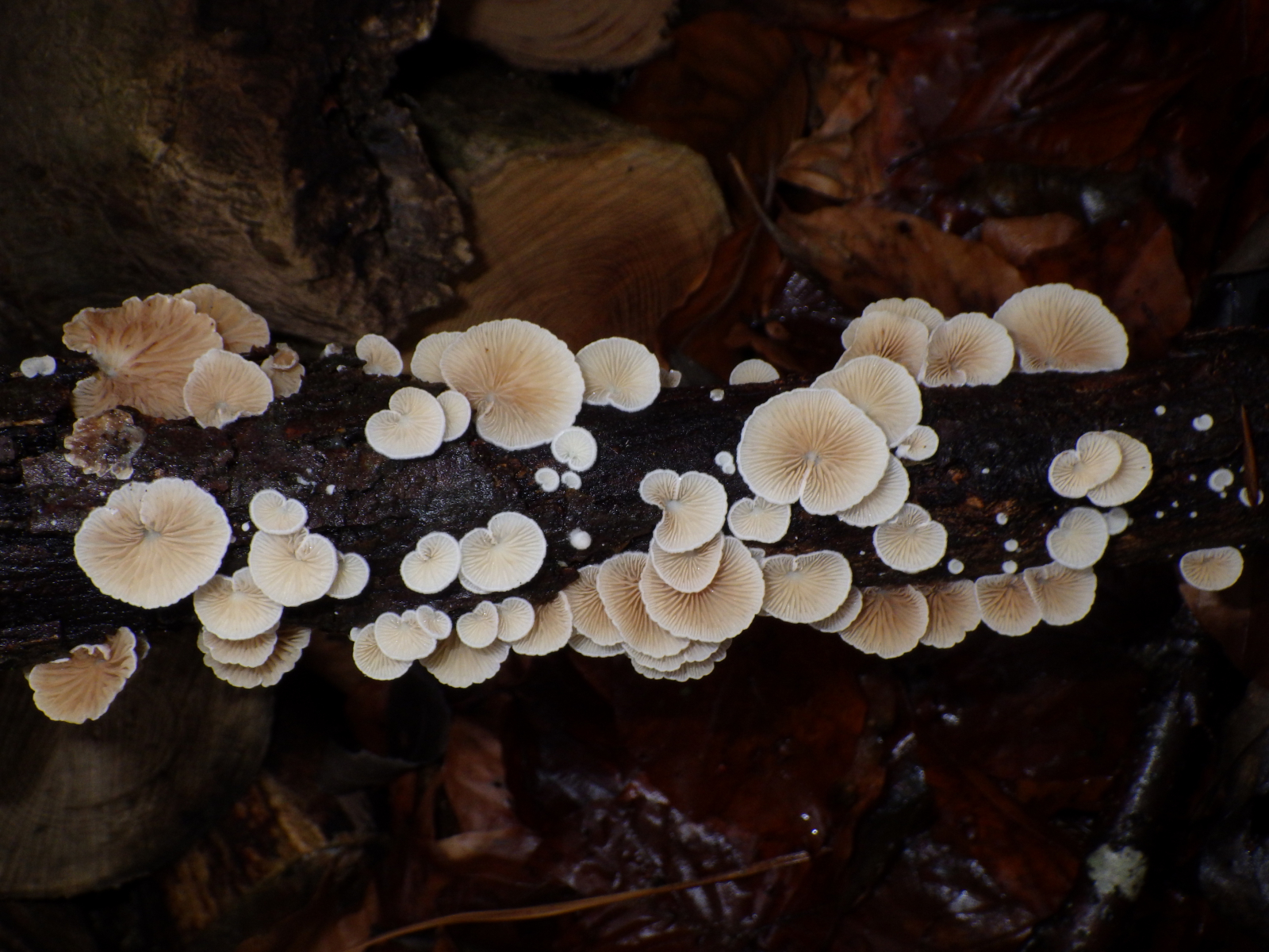 Heute auf einem Holzhaufen entdeckt, ich kann mich nicht zwischen dem Kugelsporigen Stummelfüßchen Crepidotus cesatii oder dem Glatten Stummelfüsschen Crepidotus malachius entscheiden, wahrscheinlich kann man dies ohne Mikroskopie nicht unterscheiden, oder?