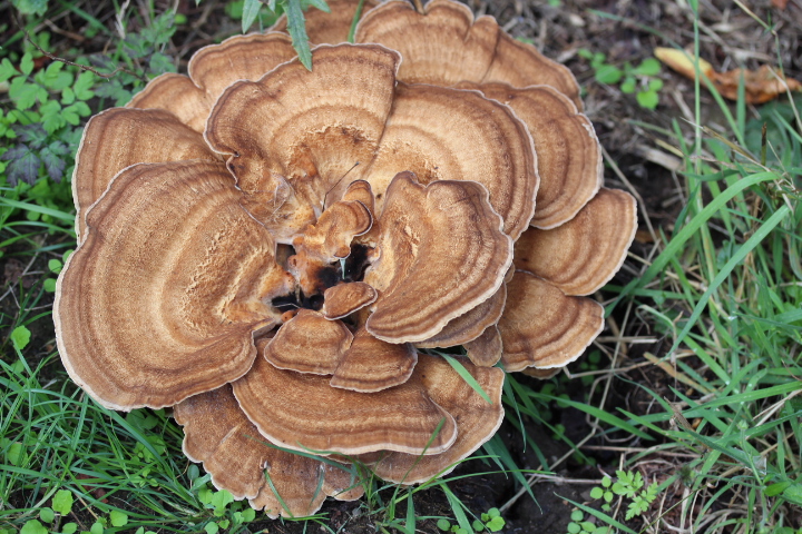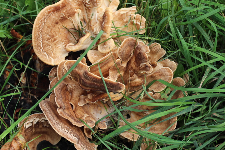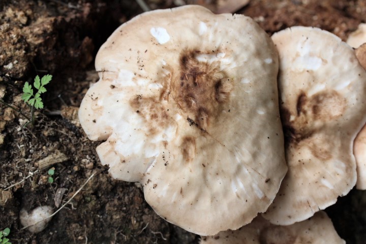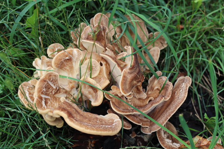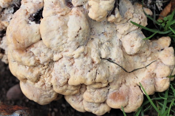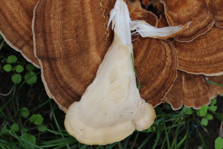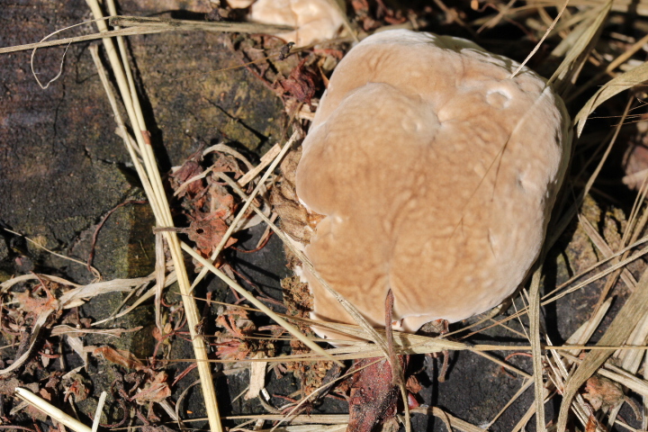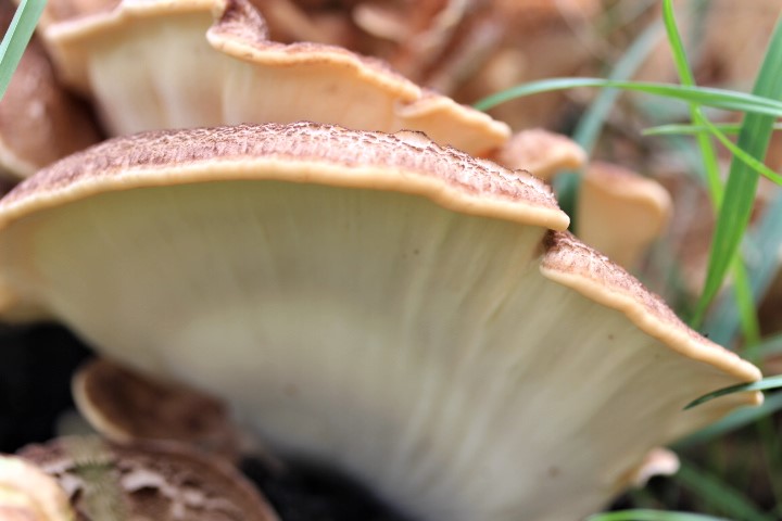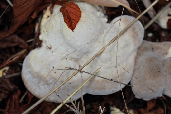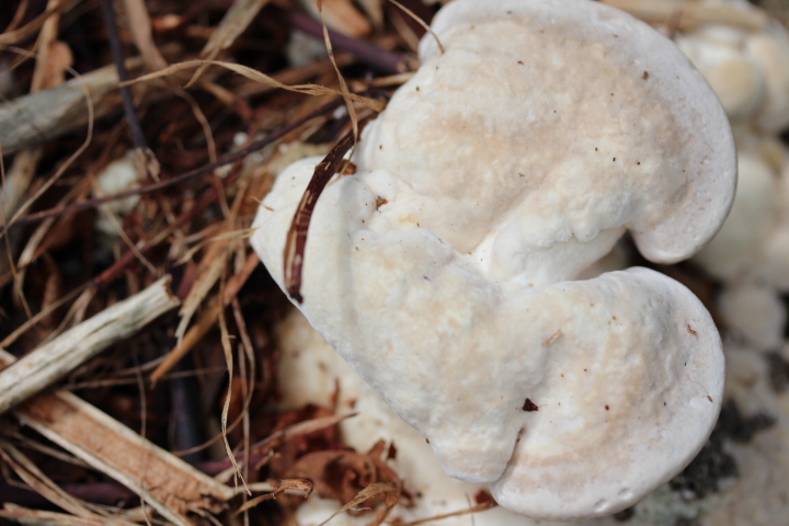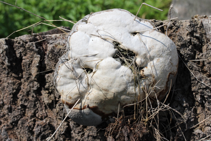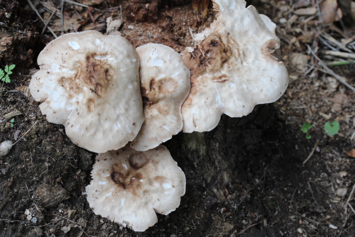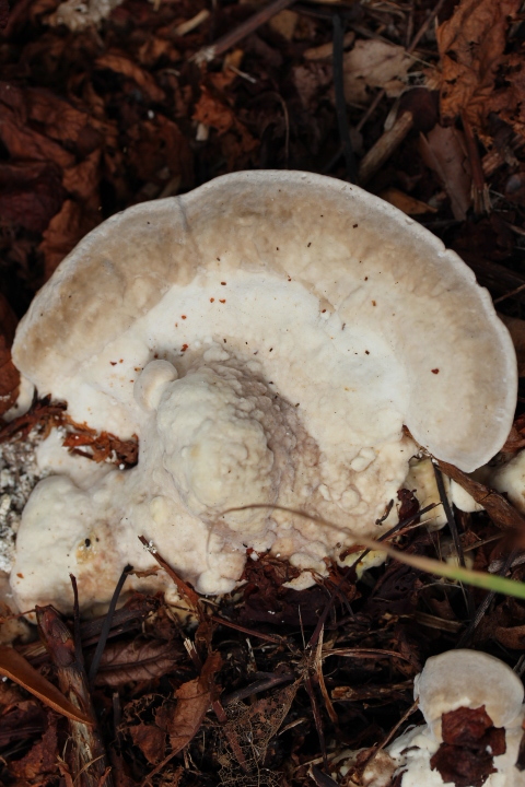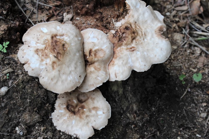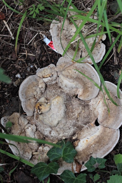 Zu 4 Kurzröhriger Weißporling auf Strünken von Kastanien