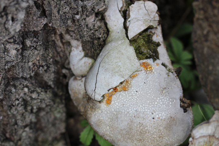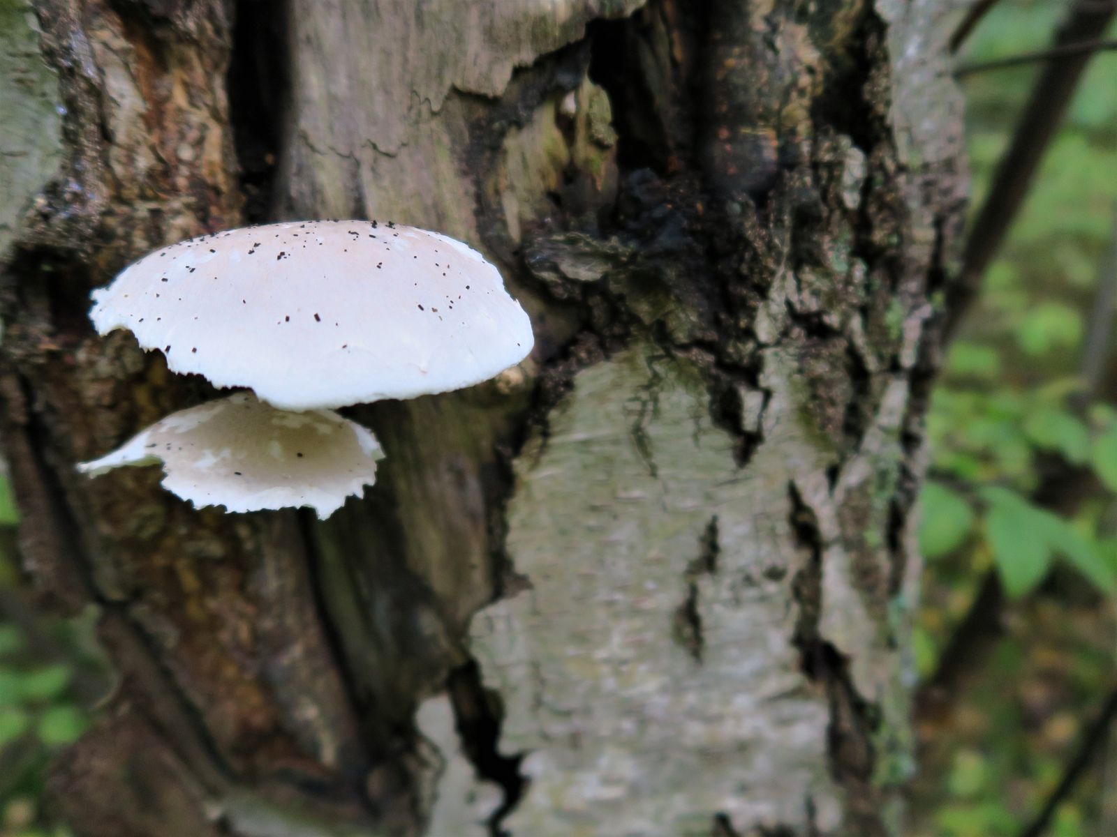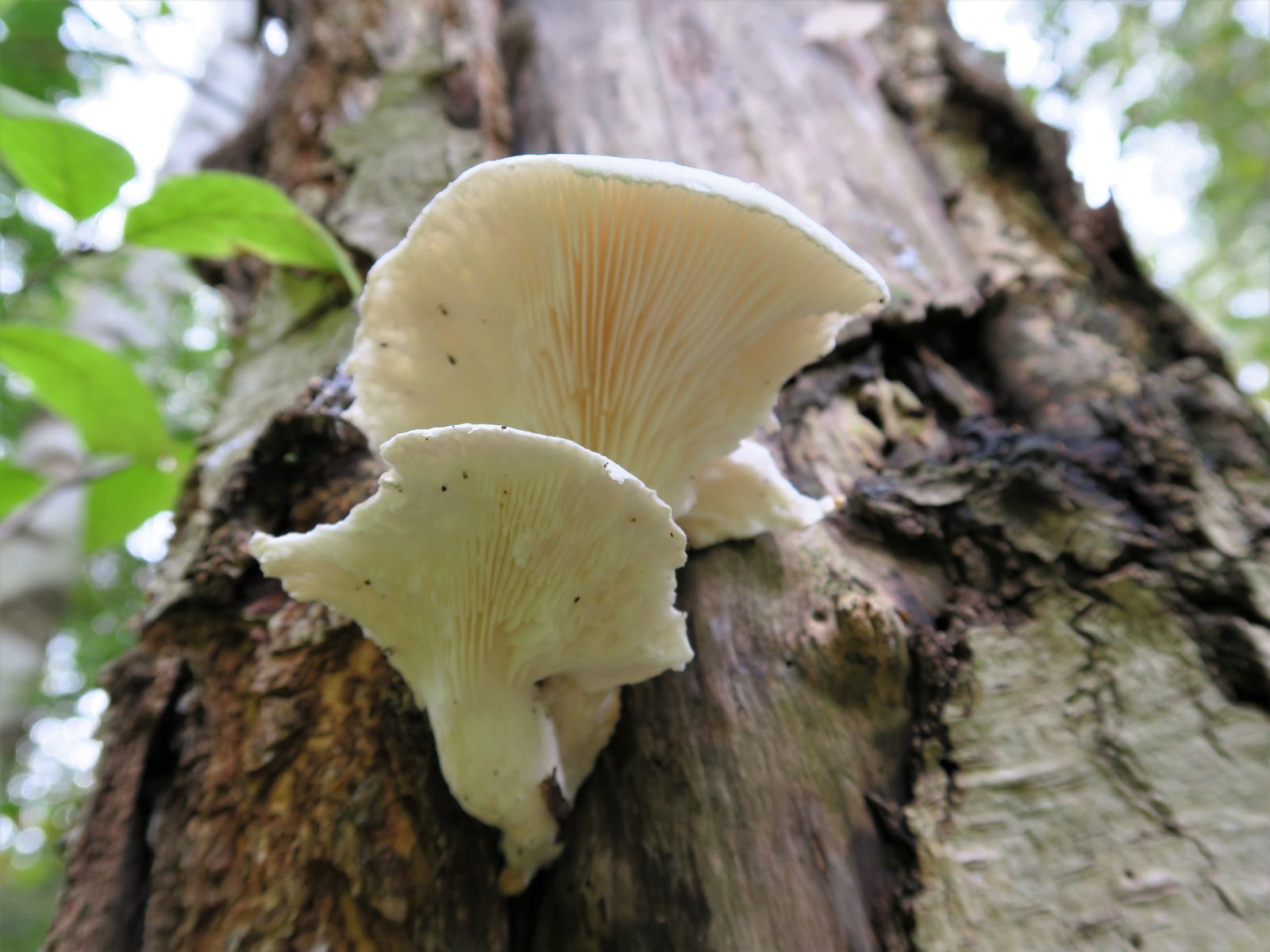orbeifahren sah ich an einem maroden Birkenstamm völlig weiße Pilze. Die Fotos sind nur mit dem Handy aufgenommen.