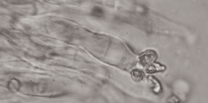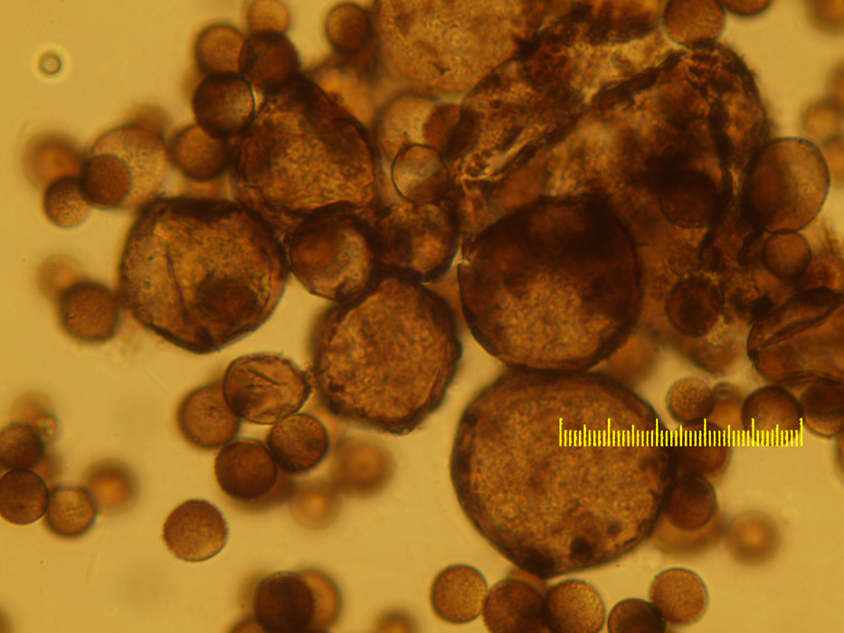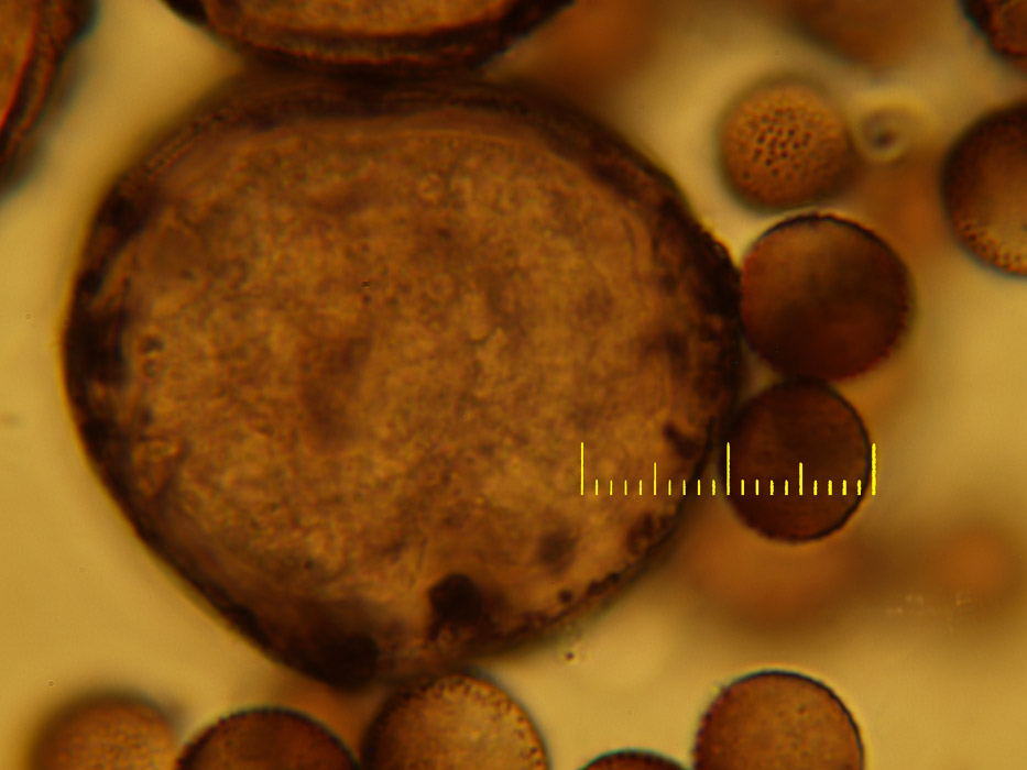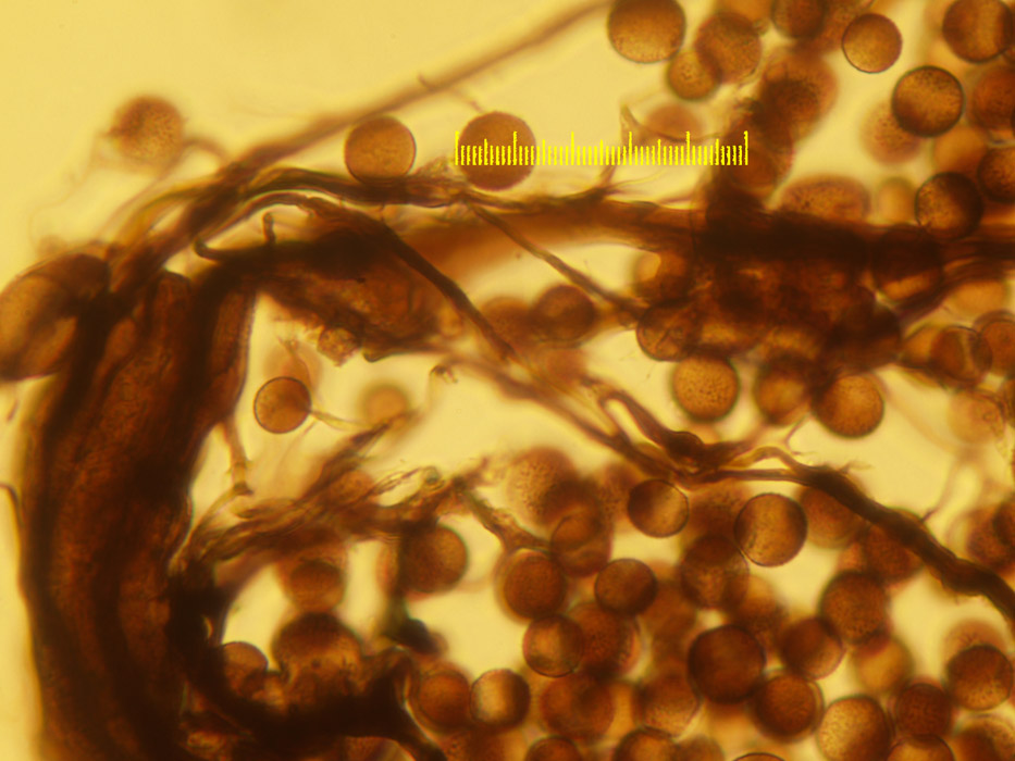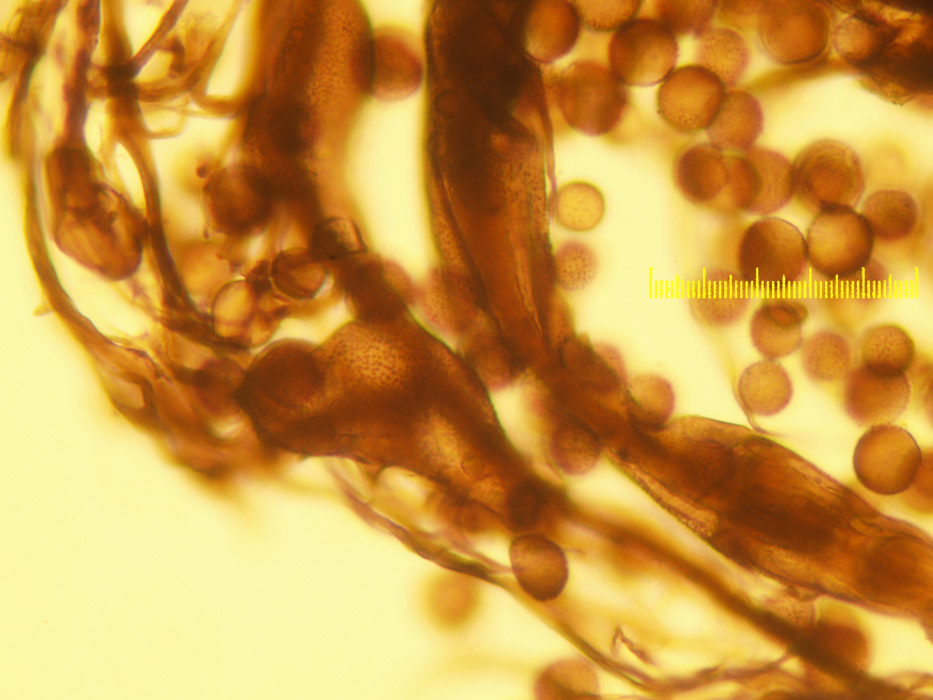 Was die großen runden Körper neben den Sporen sind weiß ich aber nicht.