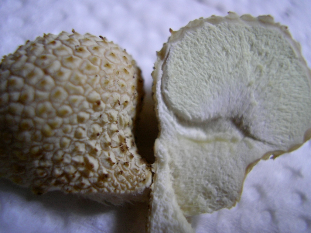 Der wächst nicht auf Totholz, hat jung abwischbare Warzen, und im weiterer verlauf ergibt sich auf dem Fruchtkörper eine vieleckige Netzzeichnung