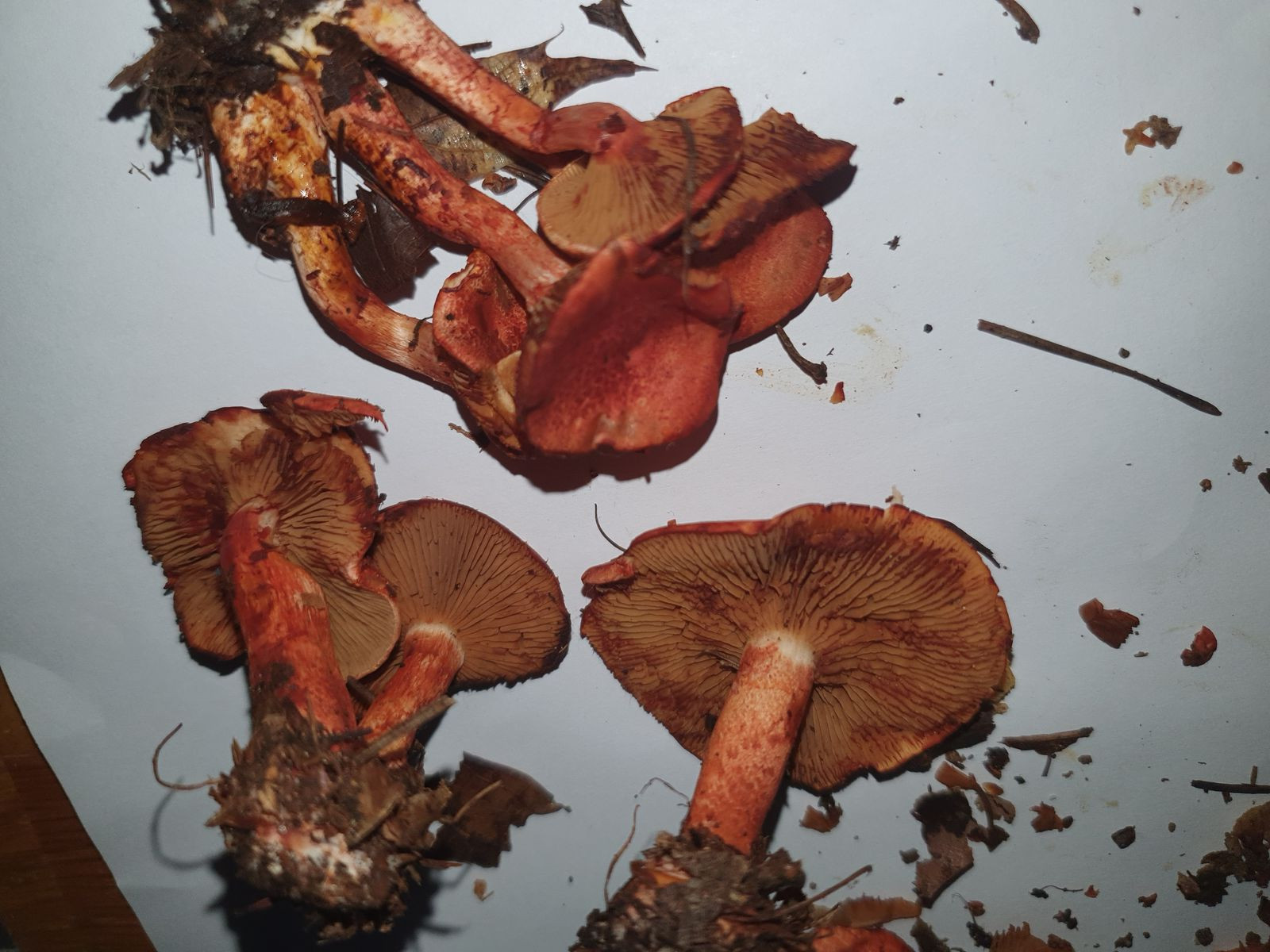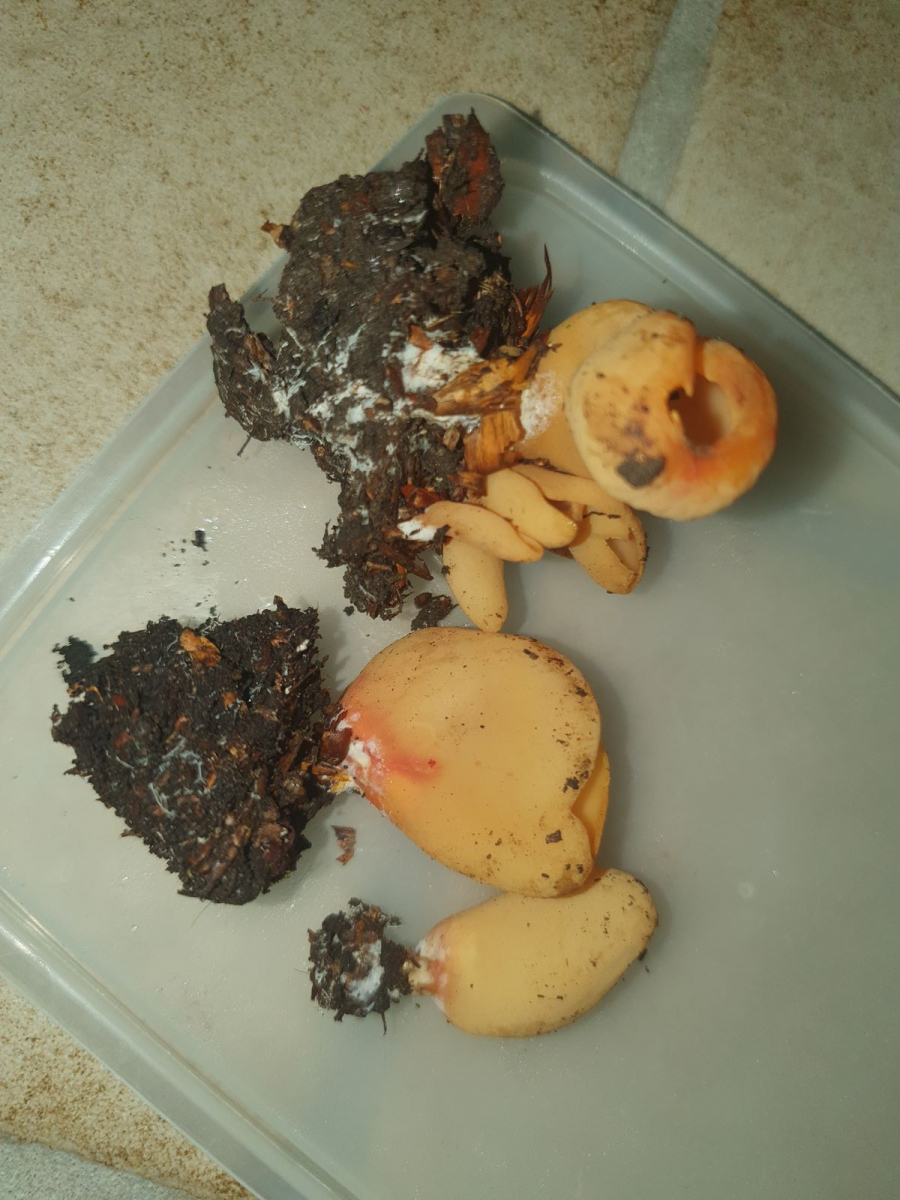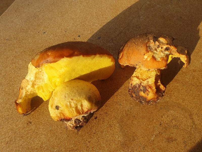 ich habe mal von den Samtfußrüblingen, die ich gesammelt hatte und weiter oben schon erwähnt habe, Fotos gemacht unter UV und sichtbarem Licht. Abgebildet sind Fruchtkörper von zwei verschiedenen Standorten am Pegnitztal, beide von Weiden, etwa 1km auseinander. Wie gesagt, die Lamellen erscheinen im UV-Licht bei 365nm deutlich rosa, das Stielfleisch hell neongelb, man kann das an der aufgerissenen Stelle am Stiel beim linken Pilz erkennen. In der Realität ist der Farbeffekt beim Rosa sogar noch deutlicher, das mag am Chip meines Smartphones liegen, der die Farben insbesondere bei den rötlichen Tönen evtl. nicht ganz korrekt darstellt, aber evtl. brauche ich auch einfach für die Zukunft noch eine etwas stärkere UV-Lampe. Aber man kann schon dennoch die deutliche Farbabweichung erkennen. Wird interessant sein, das in Zukunft mit weiteren Standorten und mit den möglichen Verwechslungspartnern zu vergleichen.