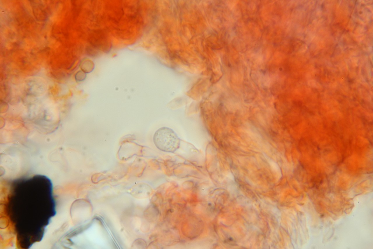 Sporen zylindrisch, hyalin, glatt, mit Öltröpfchen oder granuliertem Inhalt: