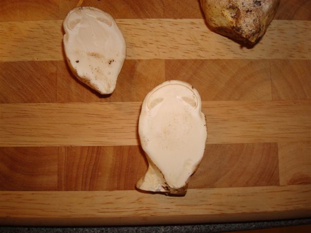Weißer pilz, unter der erde in knolligem zustand, in späterem wachstum langsam form eines bovist jedoch innen bildet sich ein hut, wird also ein ganz normaler "" champignon???...