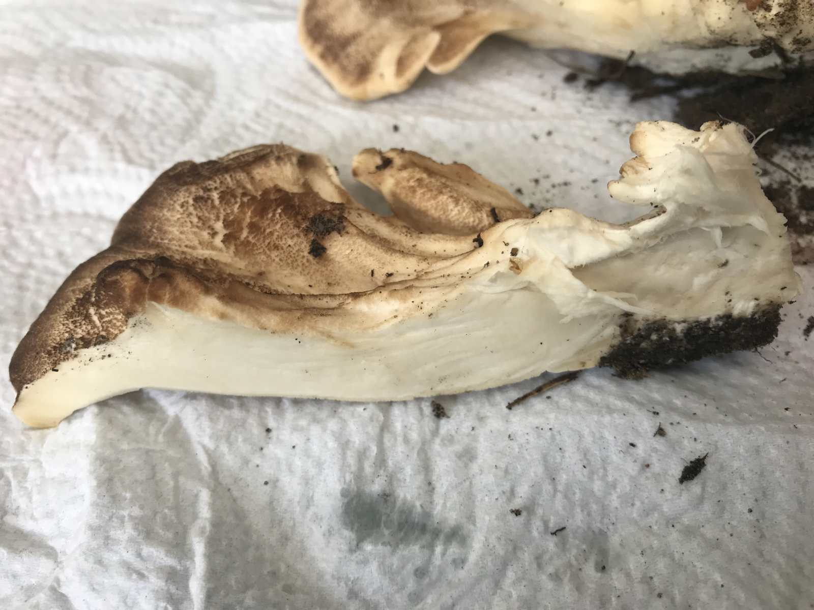 Die Pilze sind sehr fest. Oben fühlt er sich recht samtig an und die unter ist er sehr glatt, es sind ganz feine Poren erkennbar.