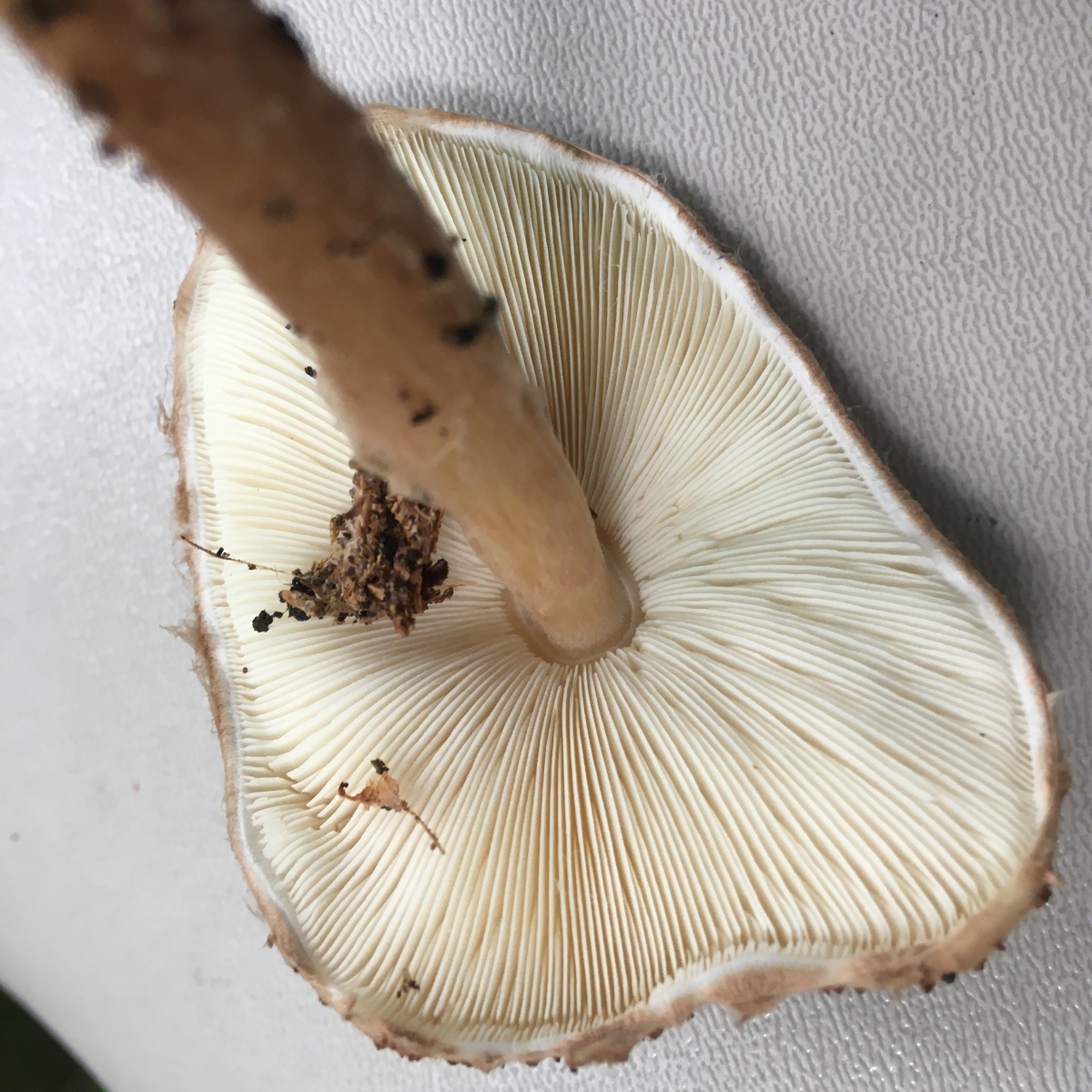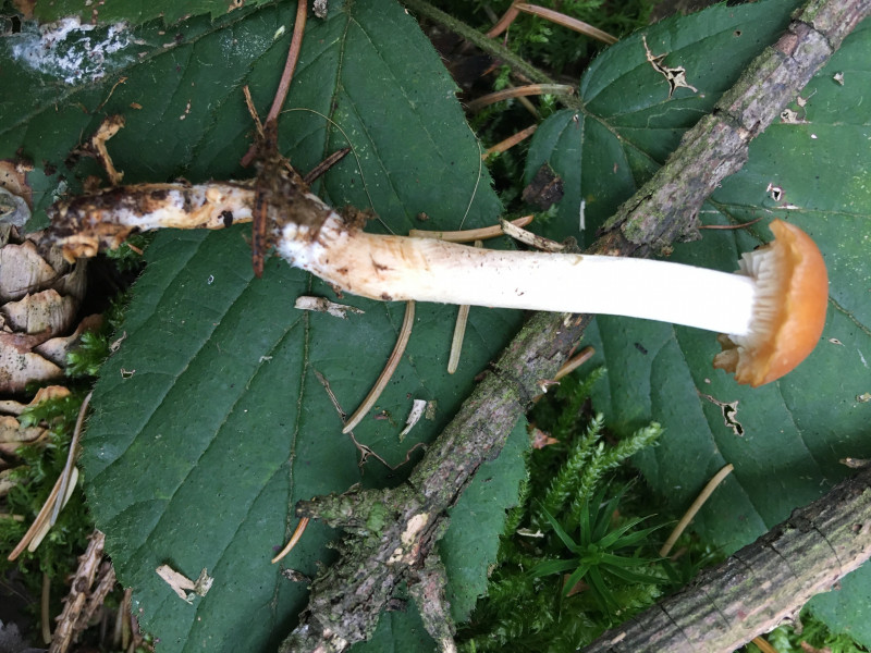 Pilz 6 = Fransiger Wulstling? Hab leider die Stielbasis nicht fotografiert. Geruch unauffâllig pilzig, sehr fasrig -