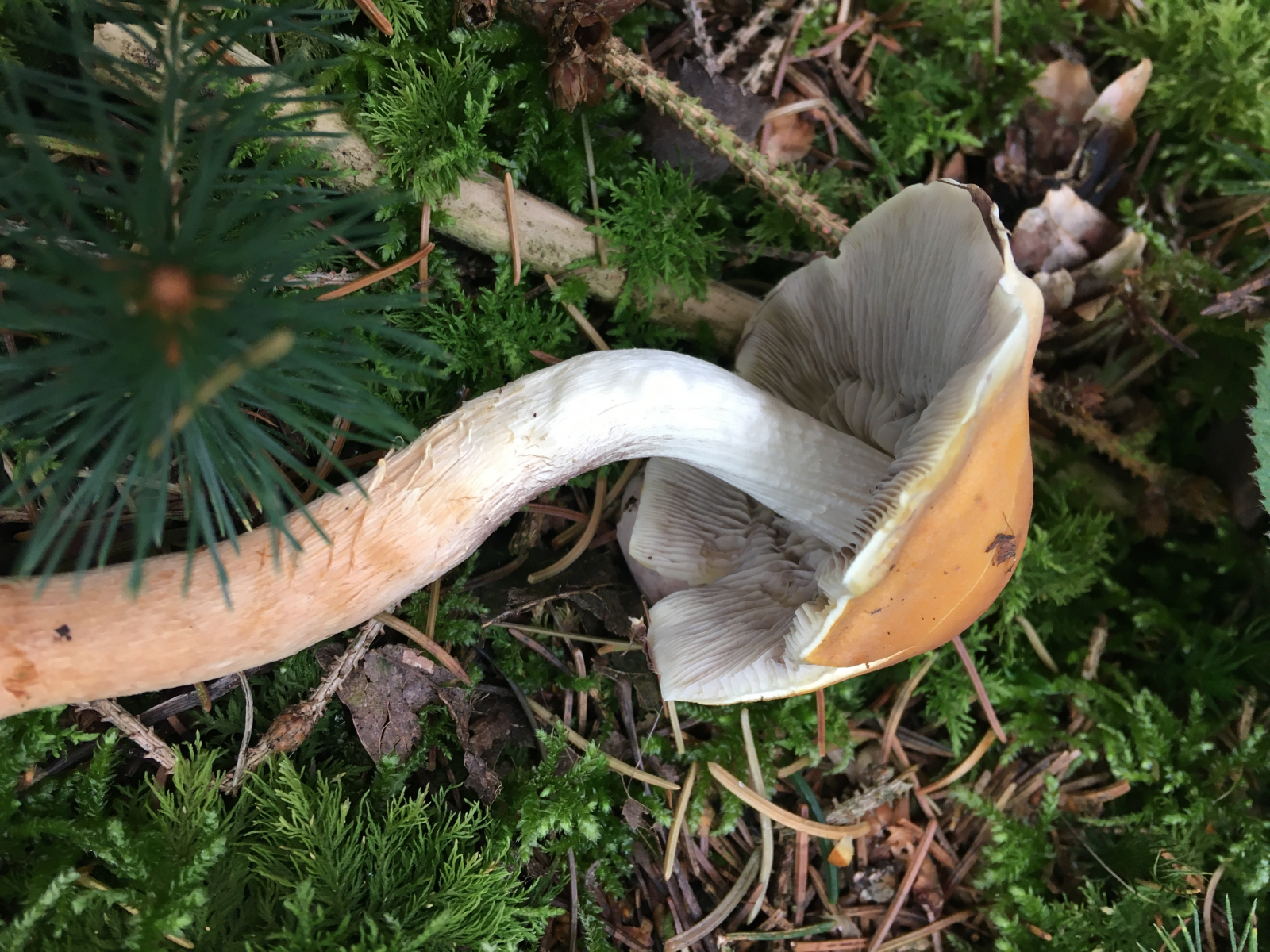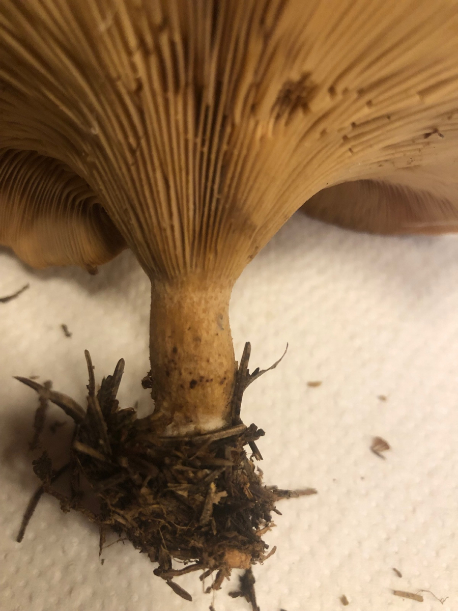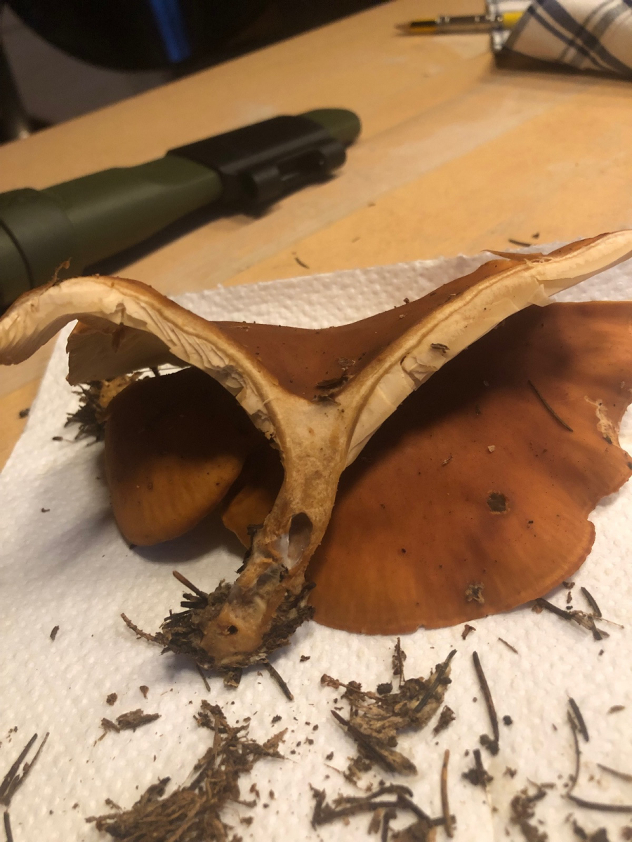 mit gilben meinte ich die gelblichen Stellen an den Lamellen im letzten Bild zb oder im vorletzten Bild sieht man es auch ganz gut am Stiel.Habe ihn leider nicht absporen lassen aber hat eine inocybe nicht genau diese Lamellenfarbe ( grau) bevor die Sporen gebildet werden oder müssten die in diesem Stadium durch die Sporenfarbe schon braun erscheinen ?