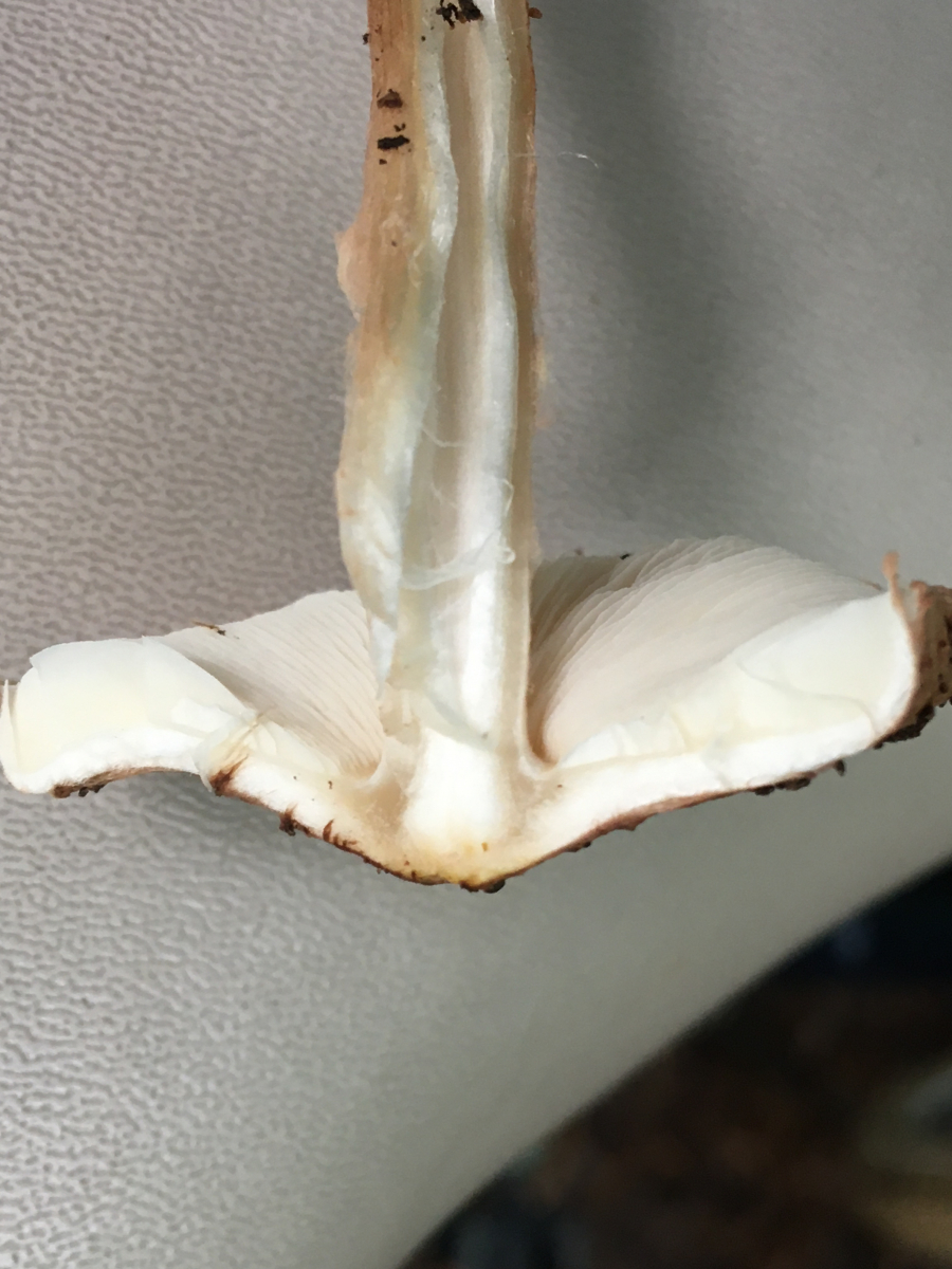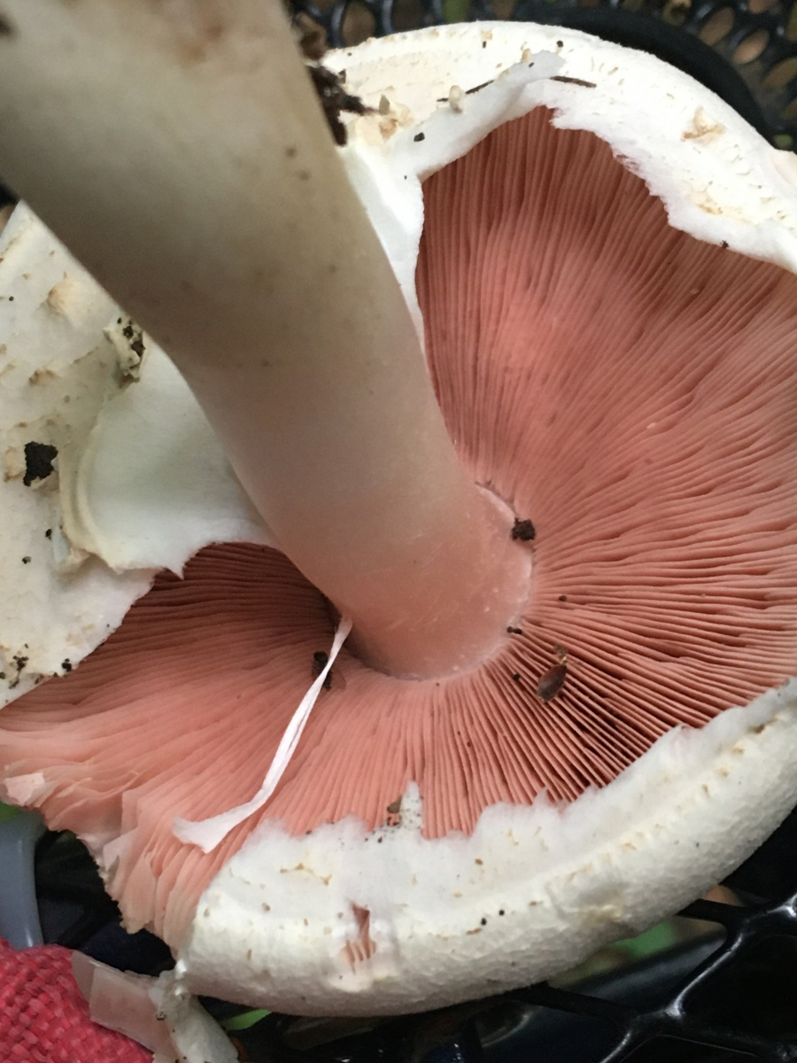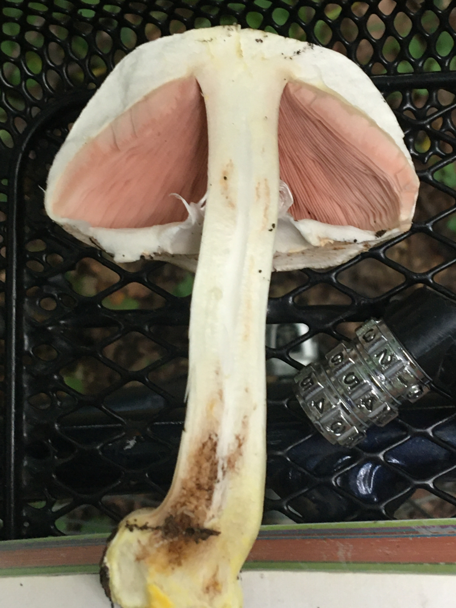 Pilz 3 Ein gilbender Champignon. Weiss dass die schwer bestimmbar sind. Evtl hat wer ne Idee. Gilbung gut erkennbar. Geruch war Bittermandel. Gibt’s das bei Champignons?