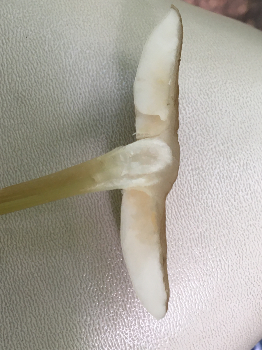 hatte einen ziemlich langen Stiel und war relativ brüchig. Wuchs auf Totholz . Hab leider die Basis abgebrochen.
