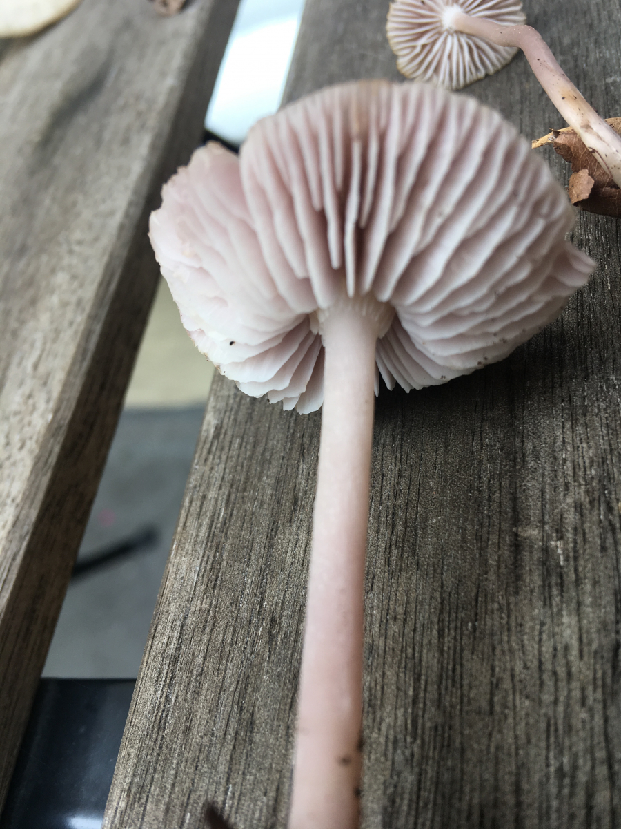 Hab daneben noch nen kleinen entdeckt mit weißen Lamellen und etwas anderer hutfarbe. Das wird ne andere Art sein denk ich.