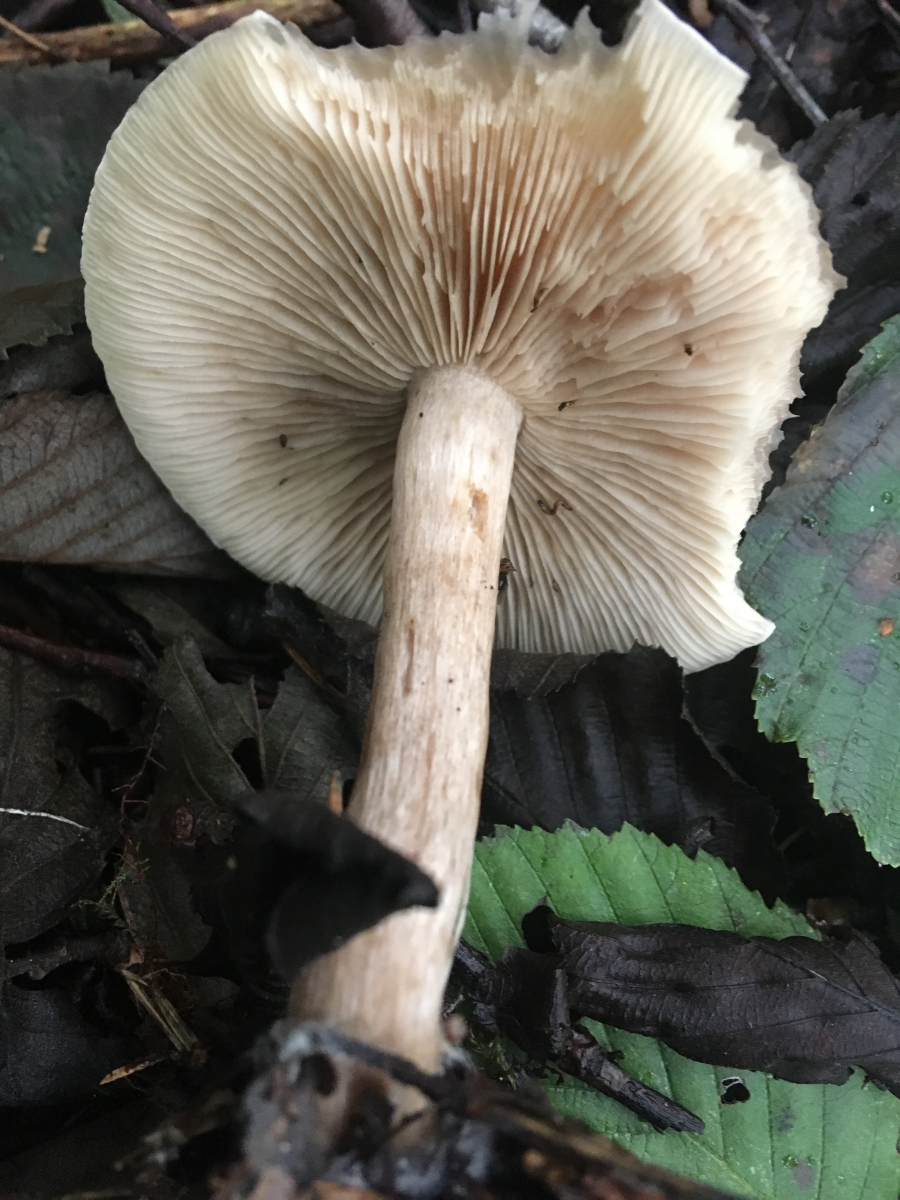 Lamellen braunschwarz, angewachsen. Lamellenscheide für mich deutlich heller erkennbar.