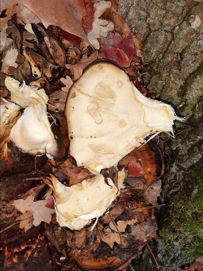 mir ist ein Pilz im Stammfußbereich einer alten Eiche aufgefallen. Die Unterseite verfärbt sich NICHT wenn man draufdrückt. Ist das ein Klapperschwamm?