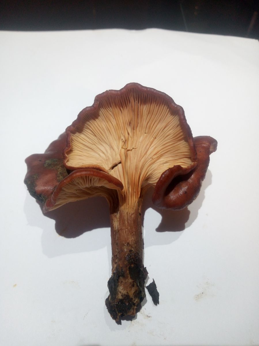 Hey Leute! habe diesen rötlichen fest fleischigen Pilz gerade massenhaft in dichten büscheln, an totem, auf dem Waldboden liegenden Laubholz gefunden. Riecht sehr würzig und nach Anis.