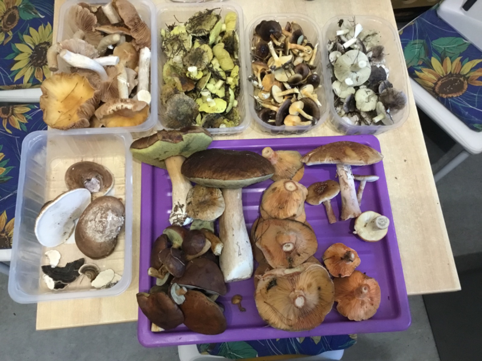 Heute habe ich Maronen, grüne Täuflinge, Habichtspilze und Grünlingen gefunden.