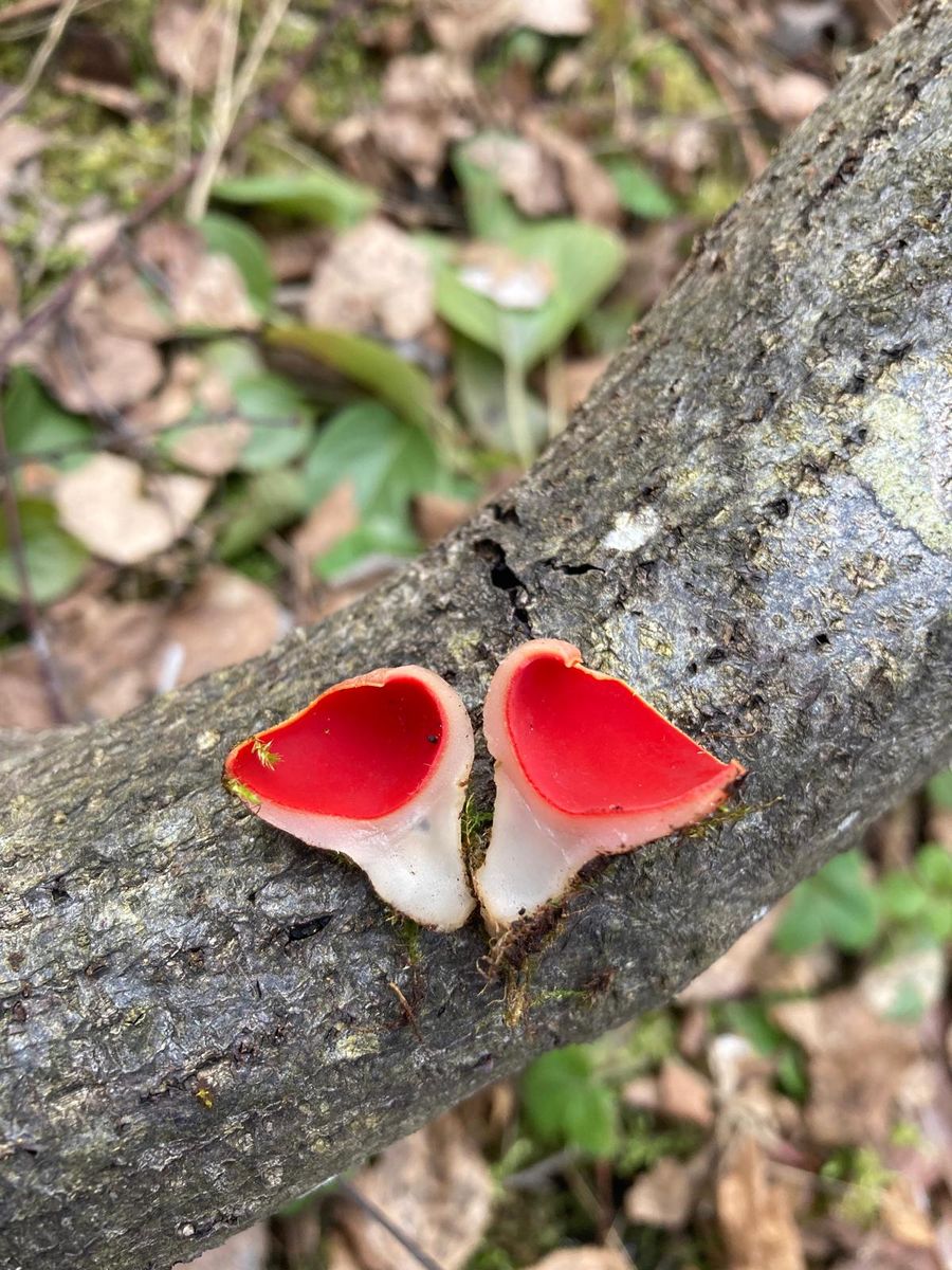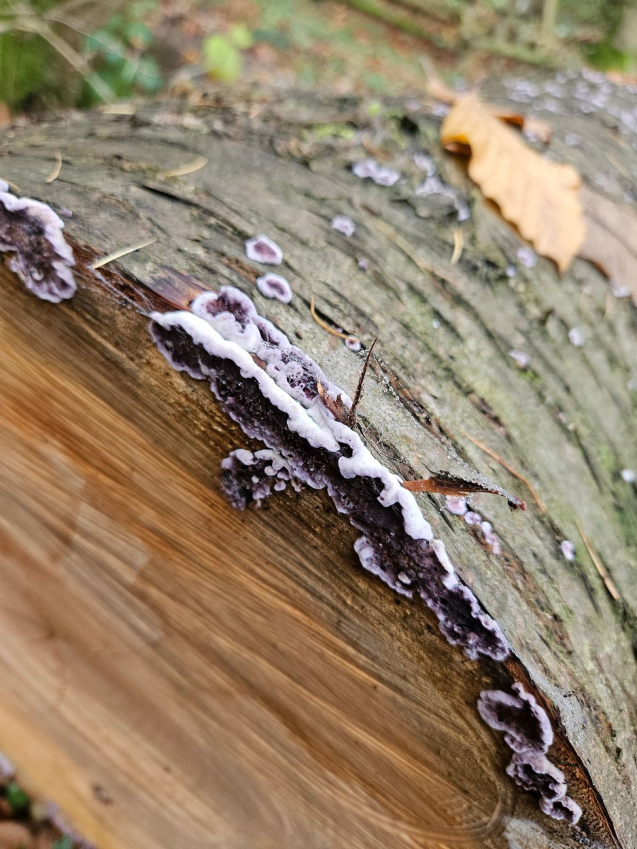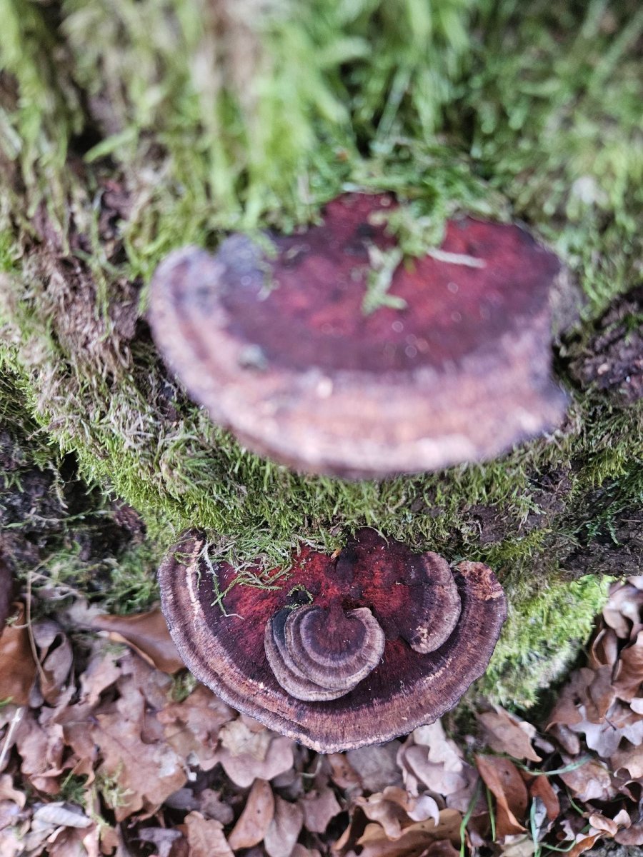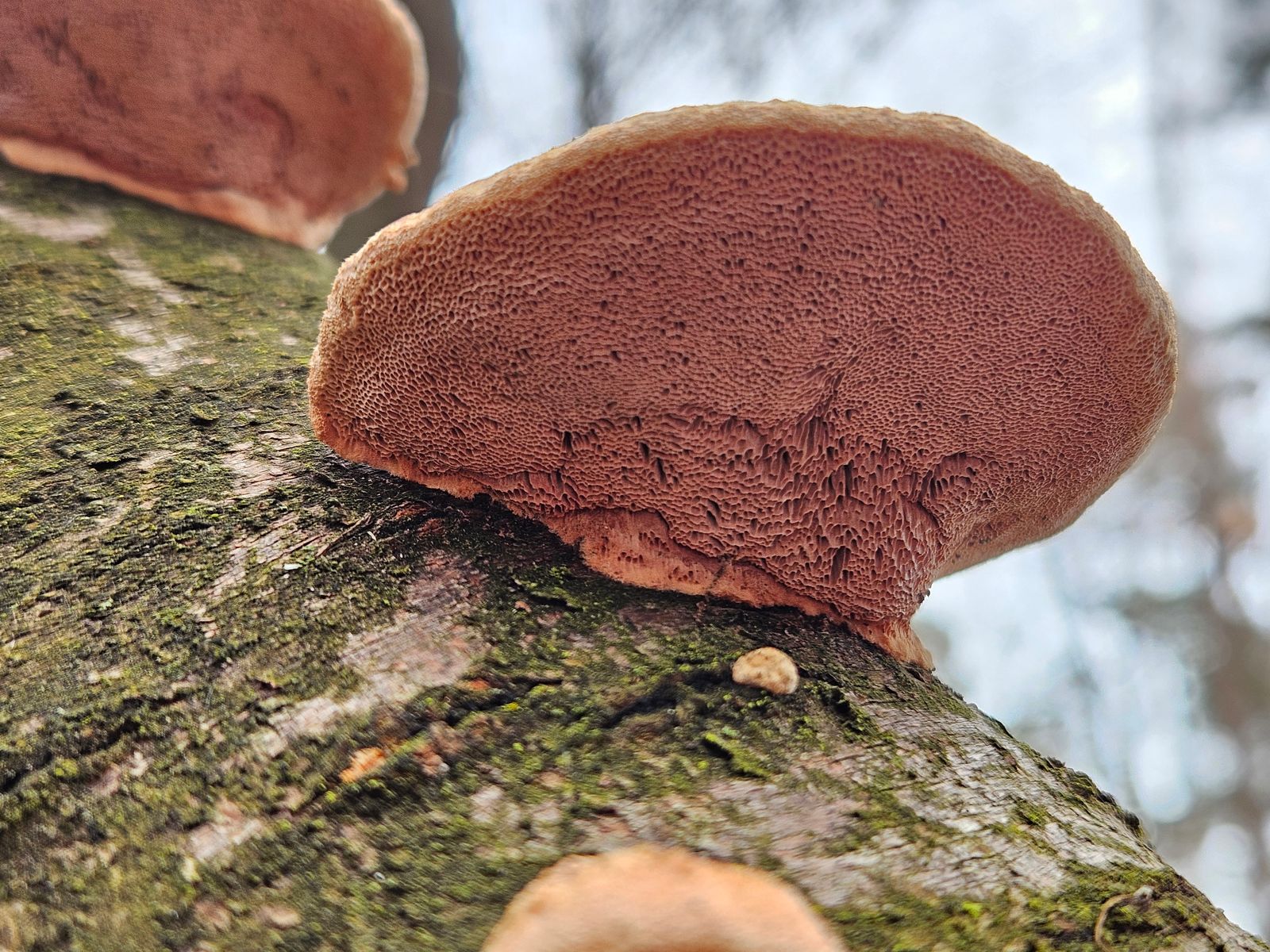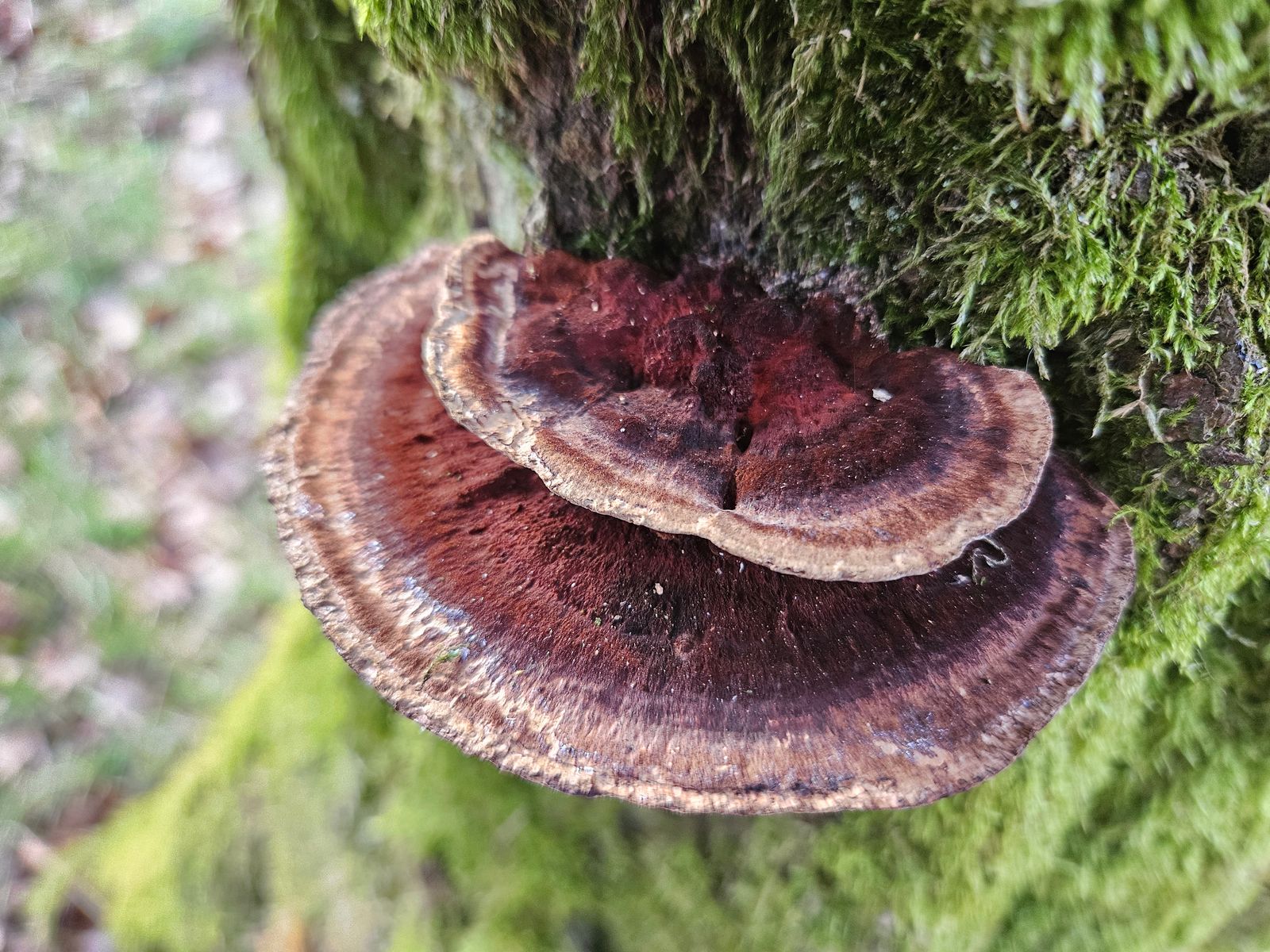 Als ich die Umgebung ganz genau nach weiteren Rauhfüssen abgesucht habe, ist mir auch der ganz unten angefügte Fruchtkörper aufgefallen. Gleich vorab, ich habe ihn nicht mitgenommen und habe weder vor so etwas zu konsumieren noch irgend etwas anderes damit zu tun. Mich interessiert es einfach nur.