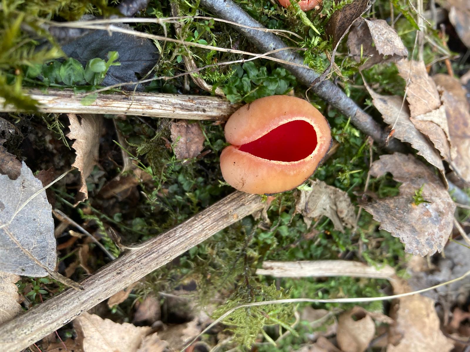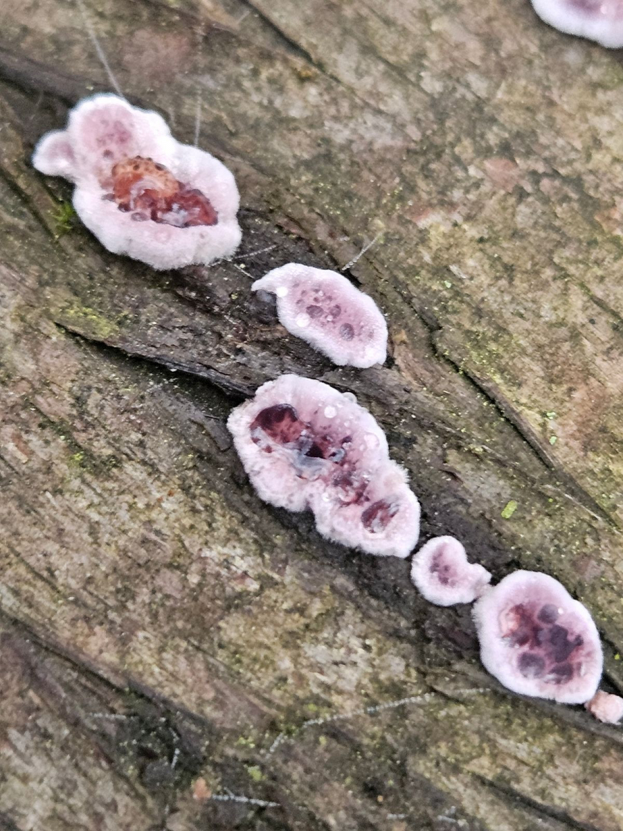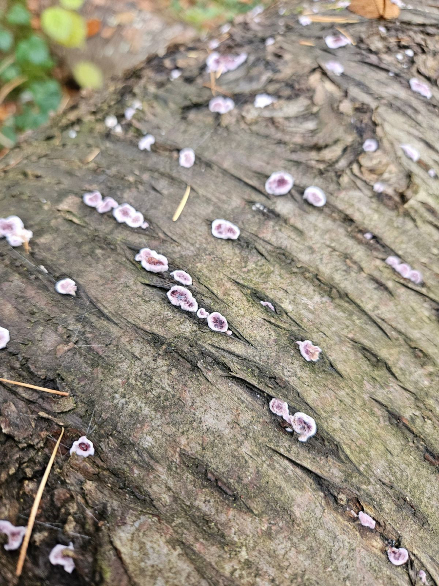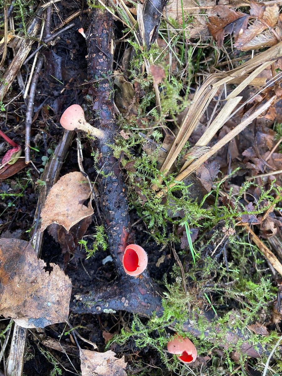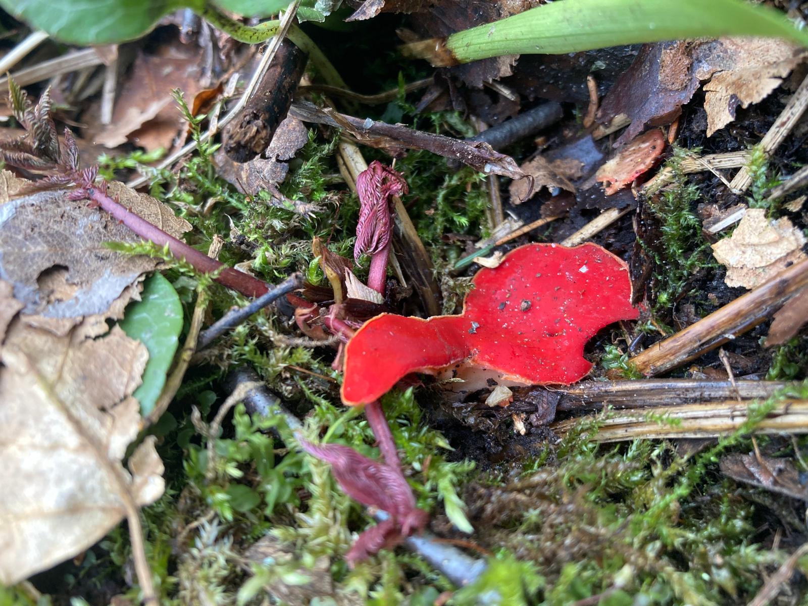 Als ich die Umgebung ganz genau nach weiteren Rauhfüssen abgesucht habe, ist mir auch der ganz unten angefügte Fruchtkörper aufgefallen. Gleich vorab, ich habe ihn nicht mitgenommen und habe weder vor so etwas zu konsumieren noch irgend etwas anderes damit zu tun. Mich interessiert es einfach nur.