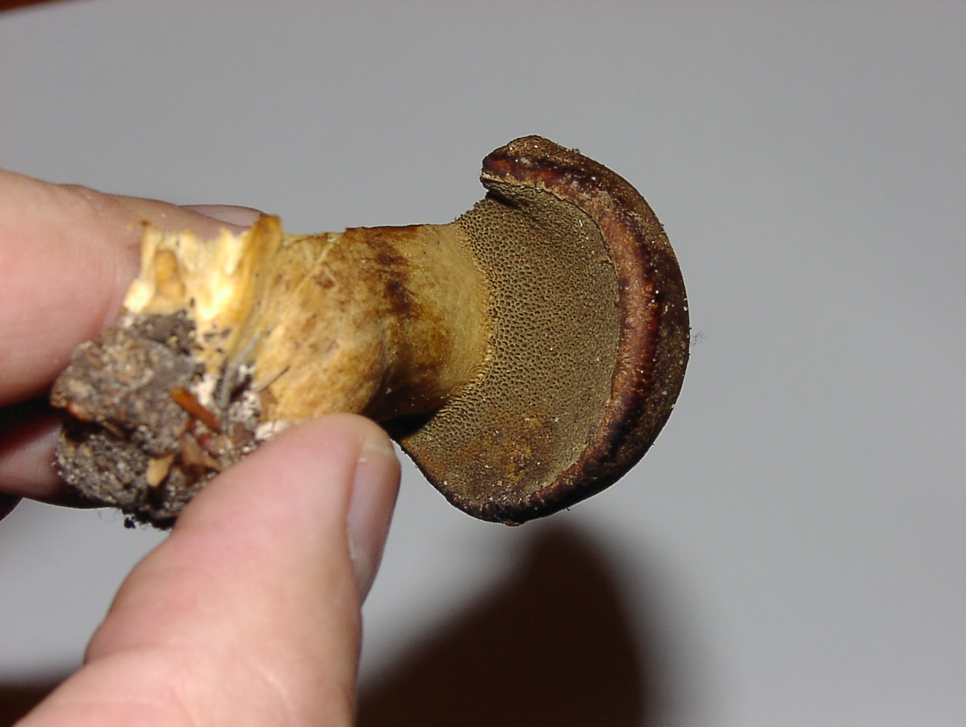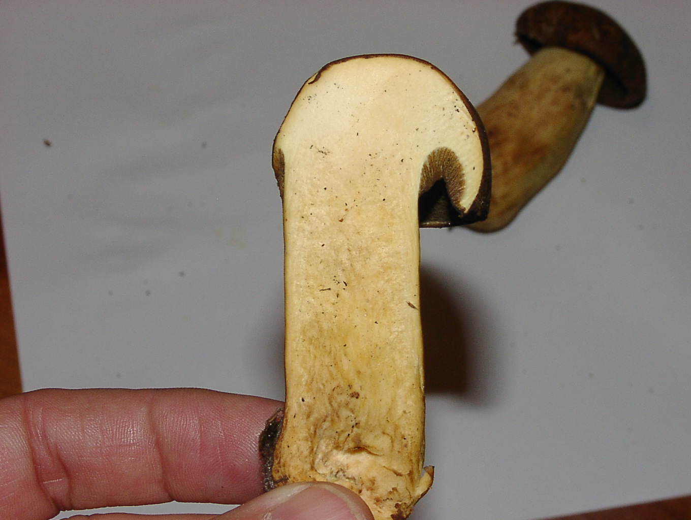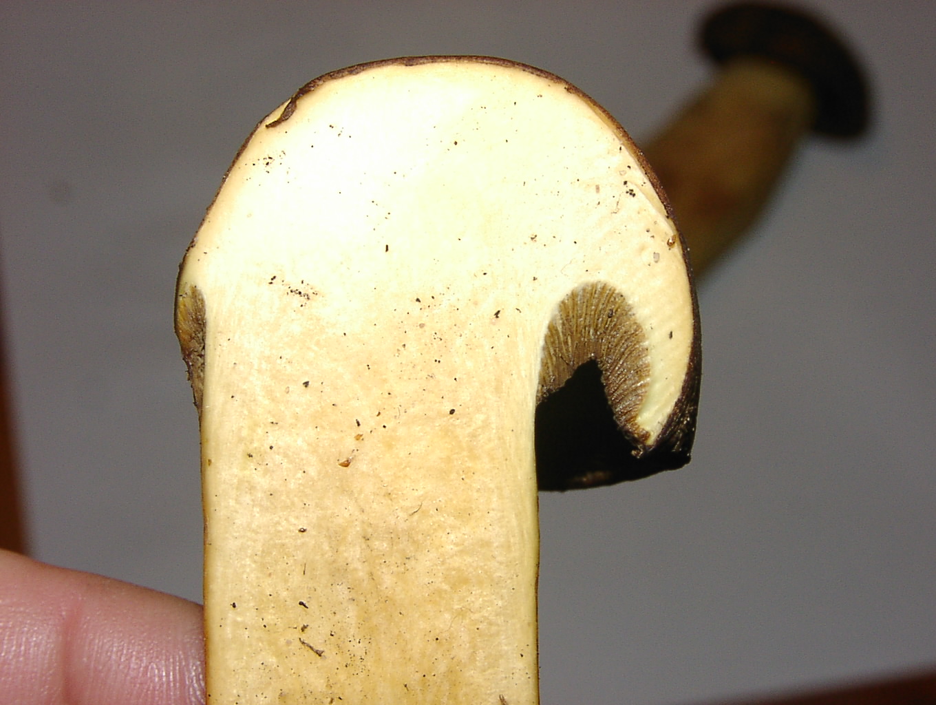 Was mich iritiert, es gibt keinerlei Bläuung. Ein Sandröhrling sollte laut Beschreibung bläuen. Auch kann ich keinen Chlorgeruch feststellen.