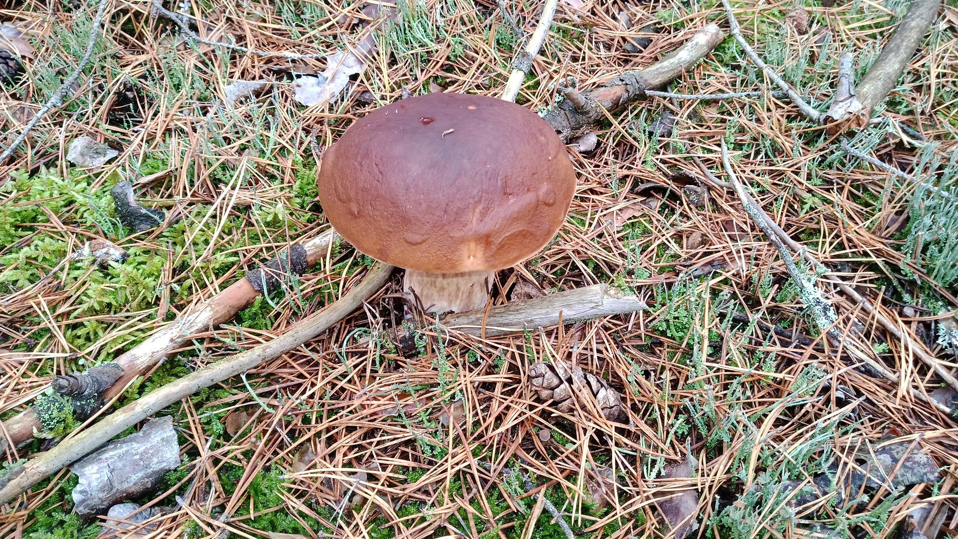 Bei der Rückfahrt habe ich aus dem Auto einen sehr großen Pilz gesehen, vermutlich Sommersteinpilz, habe aber nicht noch mal angehalten, Straßenrand, Alter,..