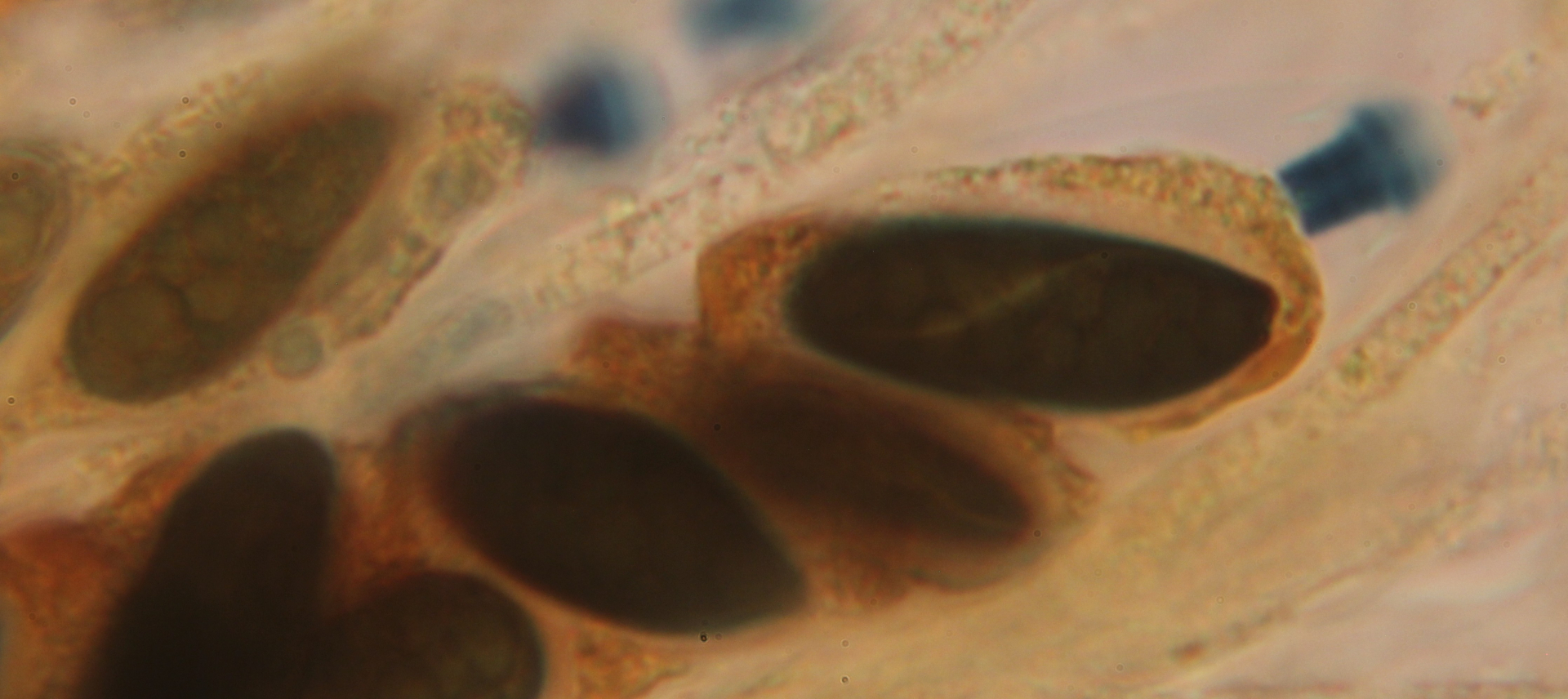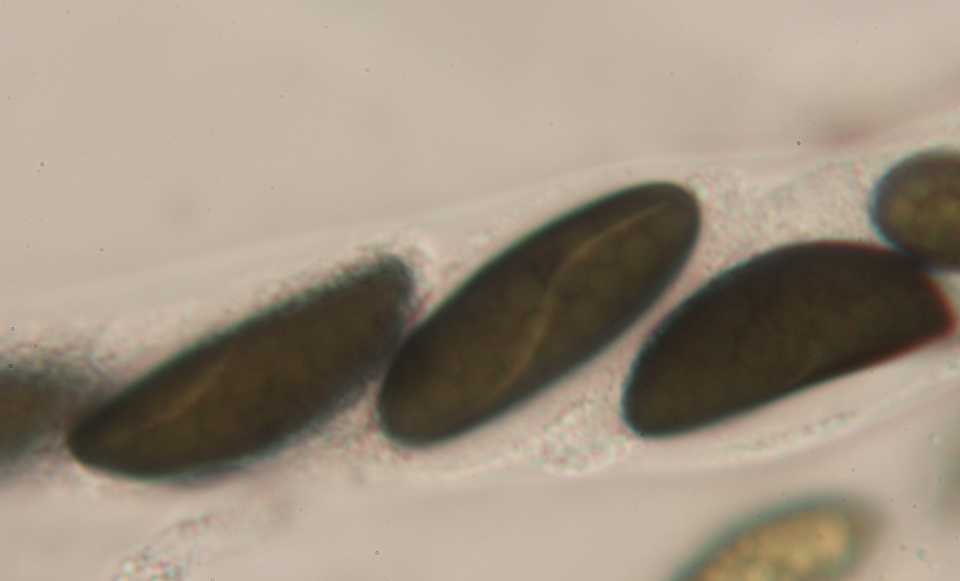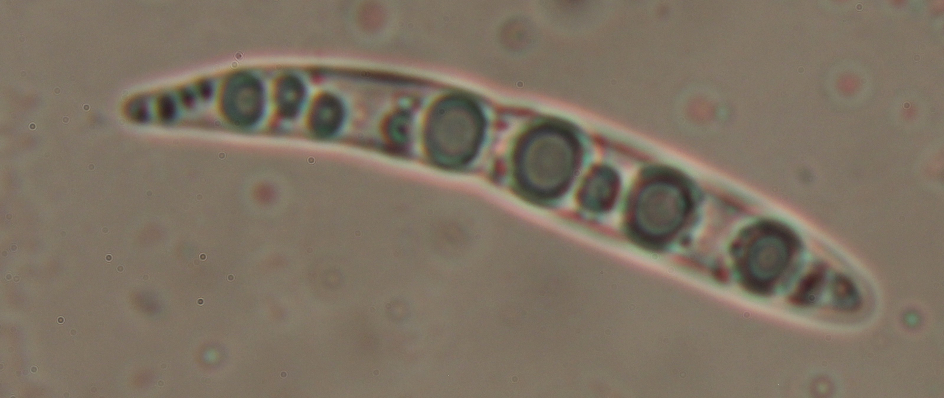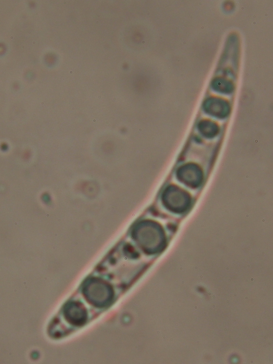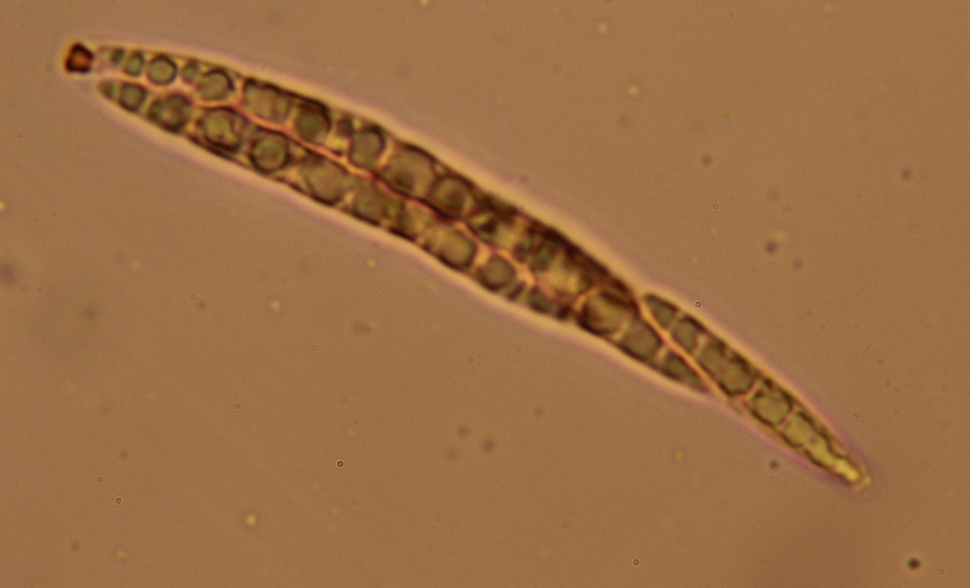 Sporen: 55-64 x 11-13 µm, mit 13 Zellen, 5.Zelle (+4.?) von oben am breitesten