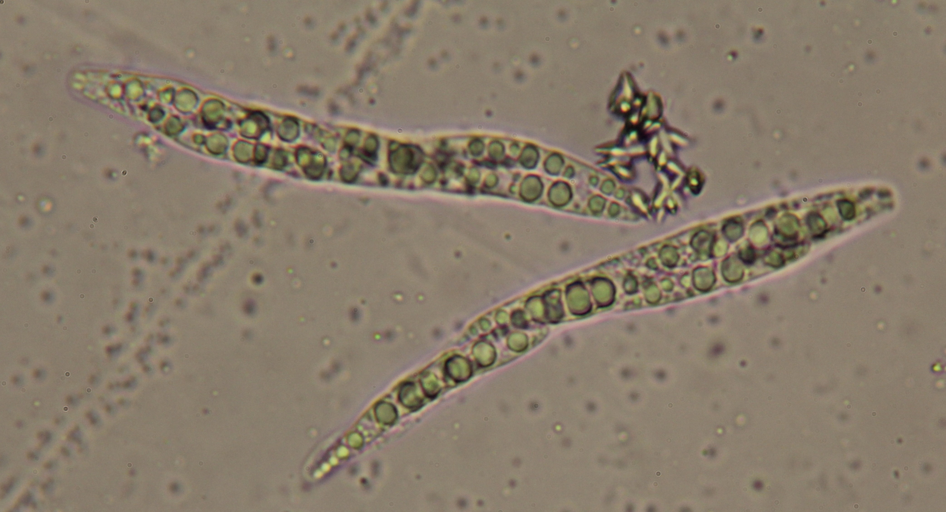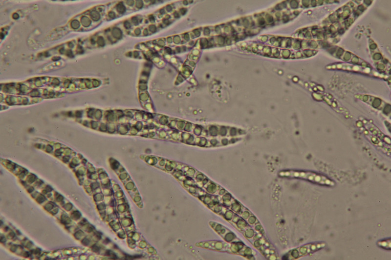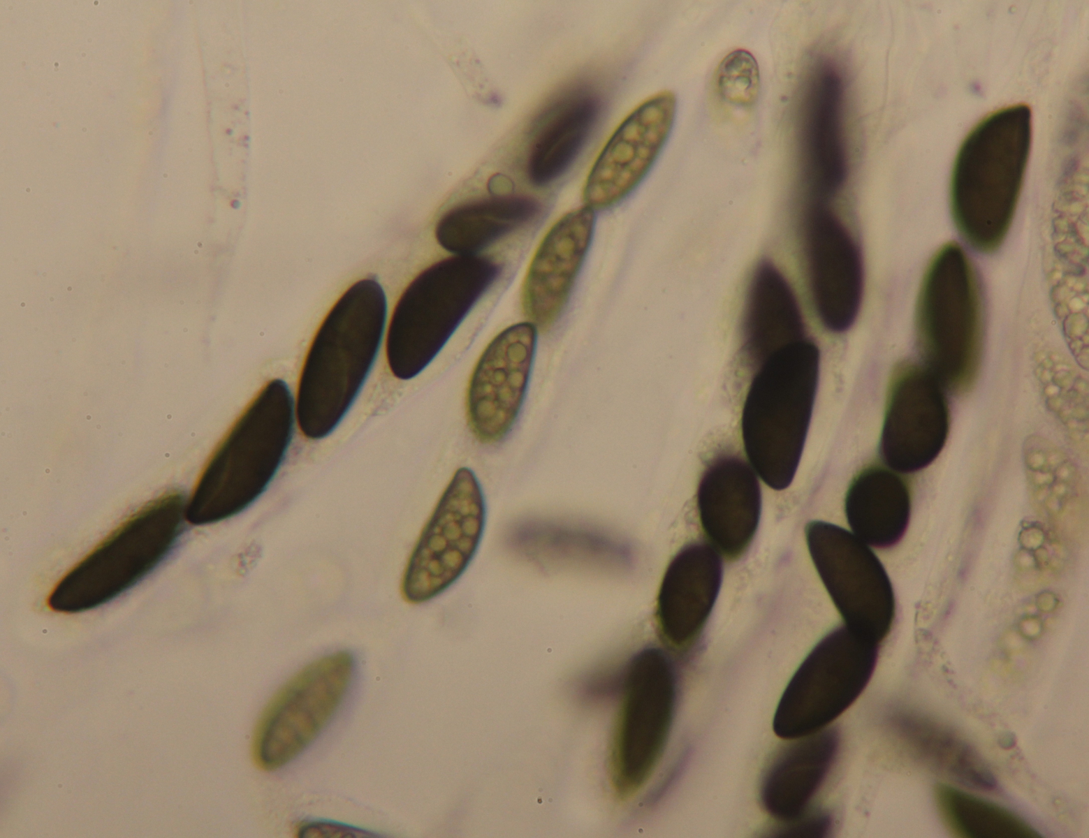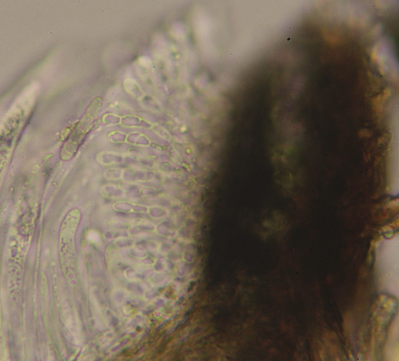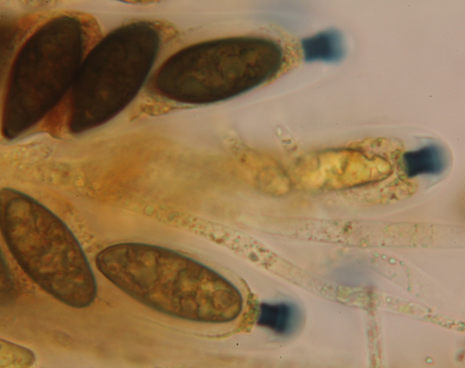 Sporen: 55-64 x 11-13 µm, mit 13 Zellen, 5.Zelle (+4.?) von oben am breitesten