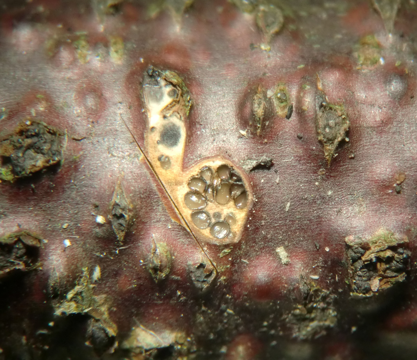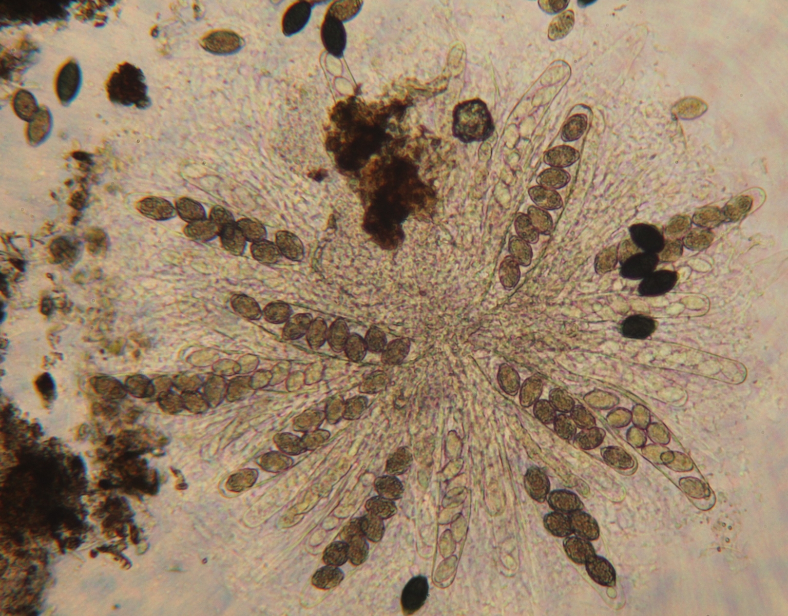 Schon im August 2021 wurde Losung vom Alpensteinbock in Österreich / Vorarlberg / St.Gallenkirch / Krüzjoch auf ca. 2400m von Isabella Oswald eingesammelt und mir im September übergeben. Aus Zeitmangel war die Probe bis zum Spätherbst trockengelegt. Kurz in der Feuchtkammer überzog das Ganze ein weißer "Schimmel" (Anthrobotrys?), so dass ich alles auch noch einige Tage dem Frost/Schnee ausgesetzt habe. Kurzum, der Dung hatte schon einige Strapazen hinter sich. Als ich nun wieder mal nachsah, fand ich winzige Pseudothezien, deren Innenleben mich glatt vom Hocker gehaut hat