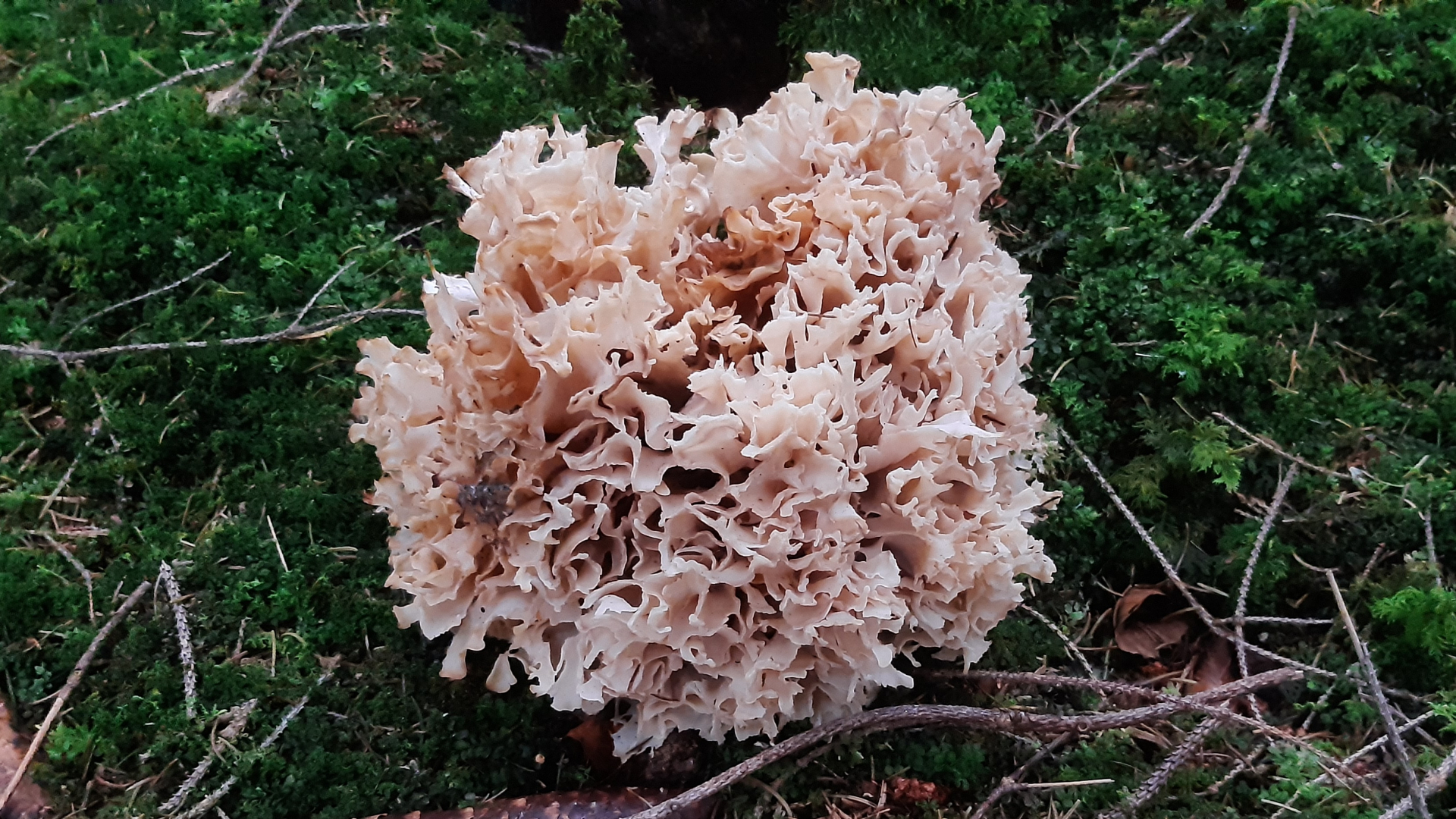 Leider nicht die Krause. Doch auch die Breitblättrige Glucke - Sparassis brevipes - ist immer etwas Schönes, wenn man sie findet.