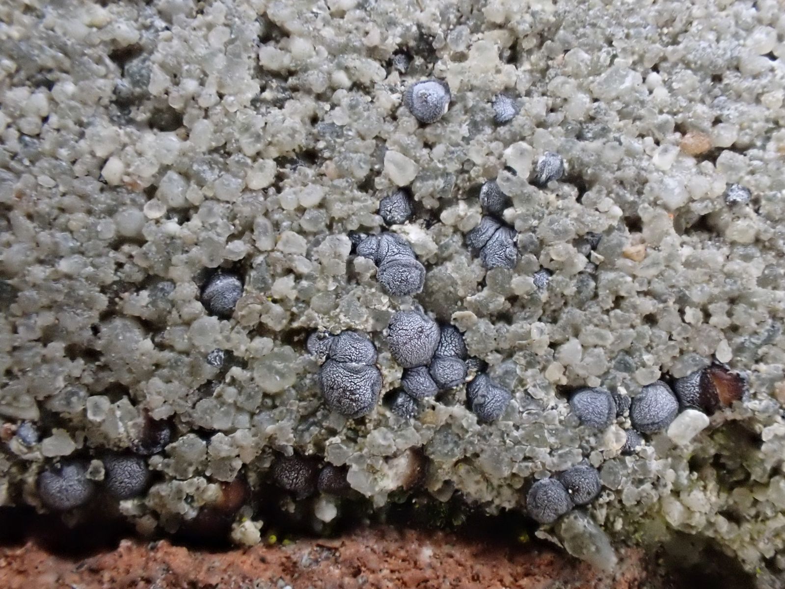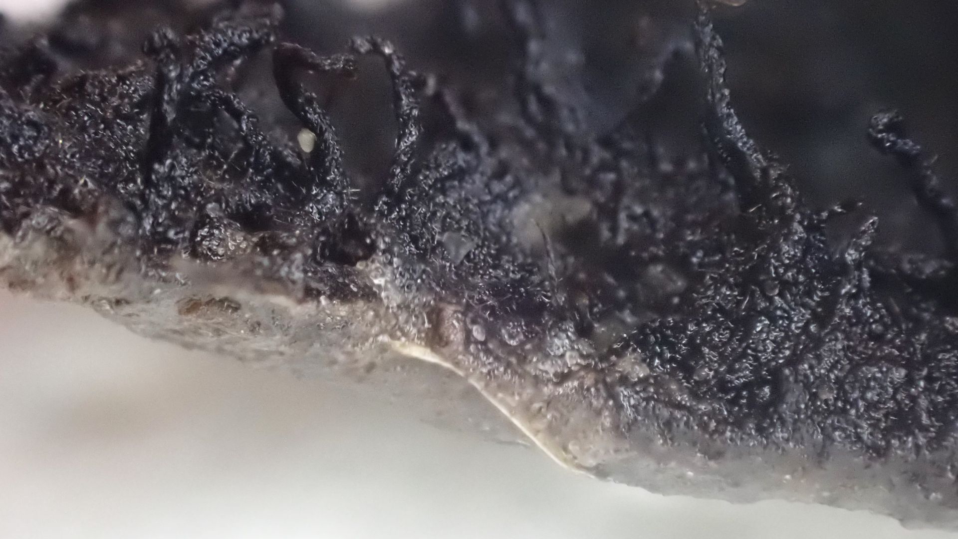 An einer Stelle im Rasen überzieht so eine dunkle Schicht den Boden. Ich dachte kurz an Nostoc, aber das sieht ja doch ganz anders aus.