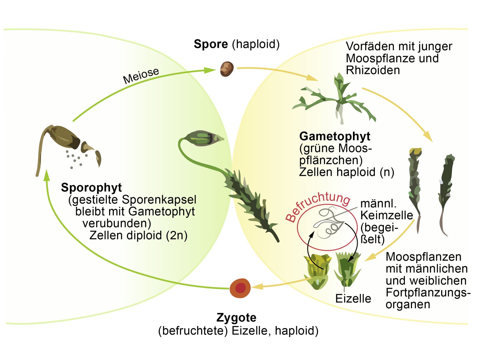 Blütenpflanzen, Sporenpflanzen, Samen, Sporen, Mitose, Meiose, diploid, haploid, Sporophyt, Gametophyt...