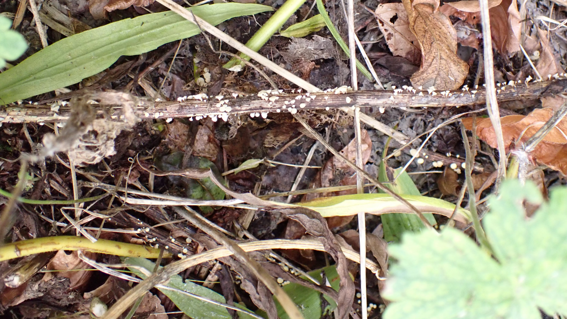 1 der Schleimpilz ist am rechten Rand der freien Fläche
