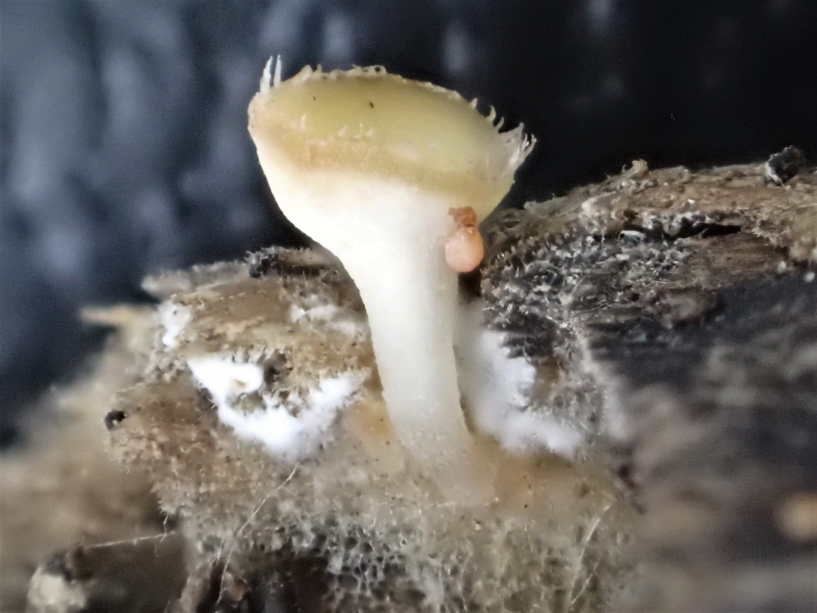 auf dem selben Baumstumpf, wie HIER, habe ich eine kleine Stelle mit diesen Pilzchen gefunden.