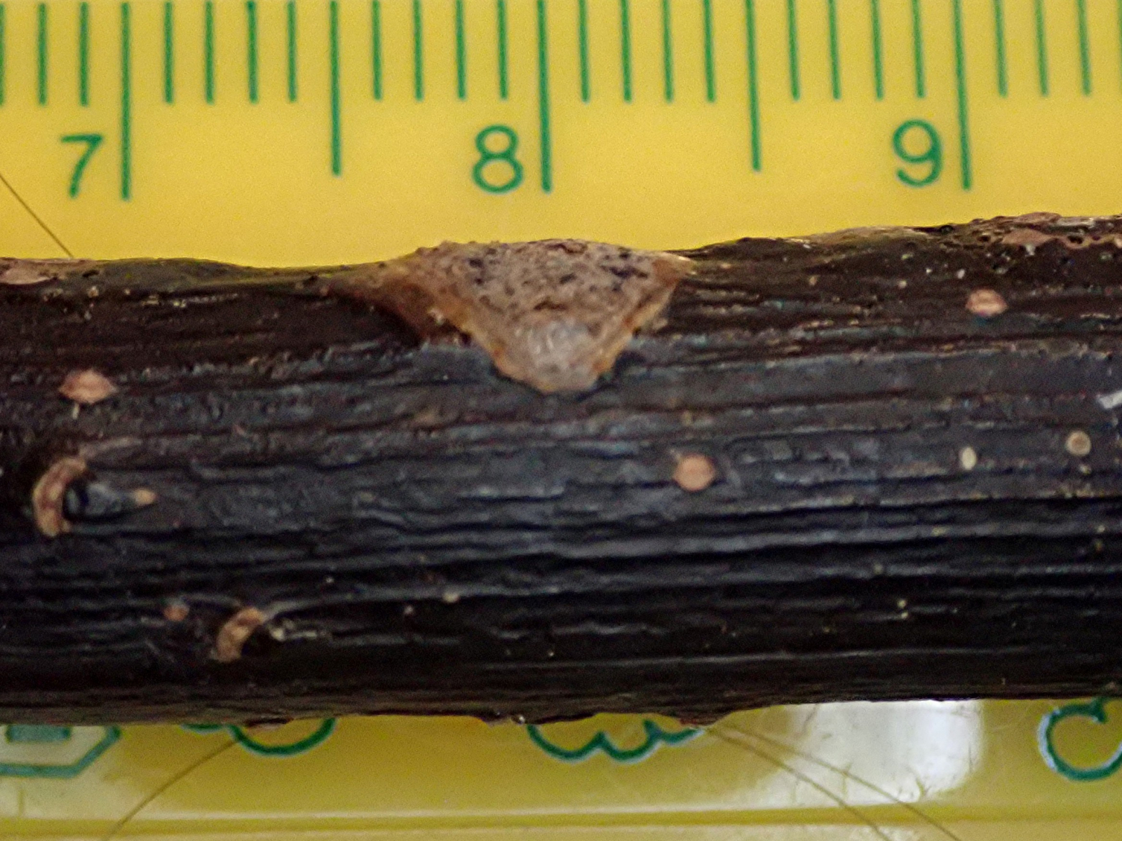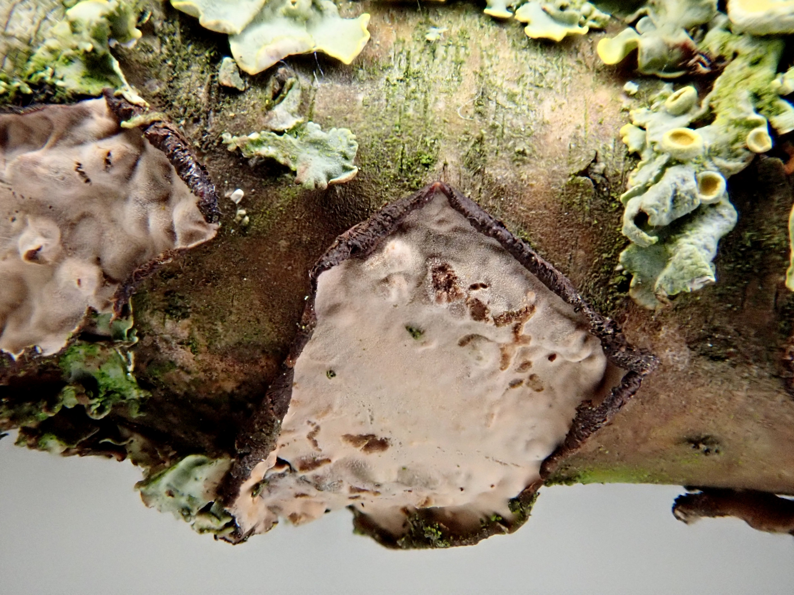 Er wächst auf einem kleinen Zweig, 1,5cm Durchmesser, der auf einem Waldweg lag (Eichen-Hainbuchenwald).