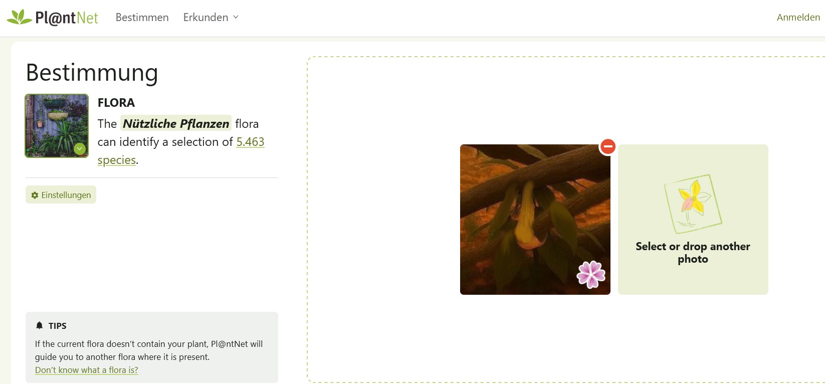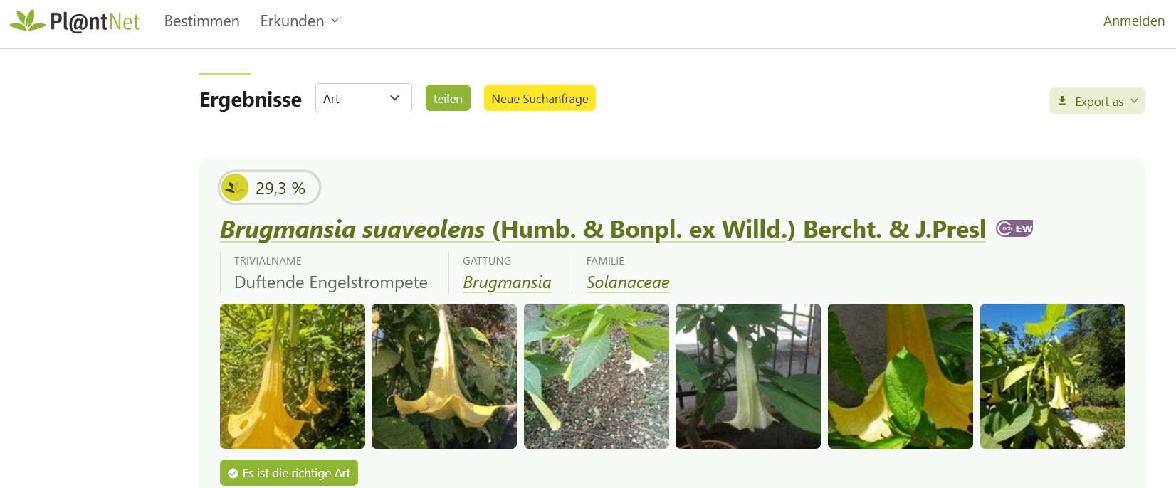 Das Ergebnis habe ich bei PlantNet eingegeben.