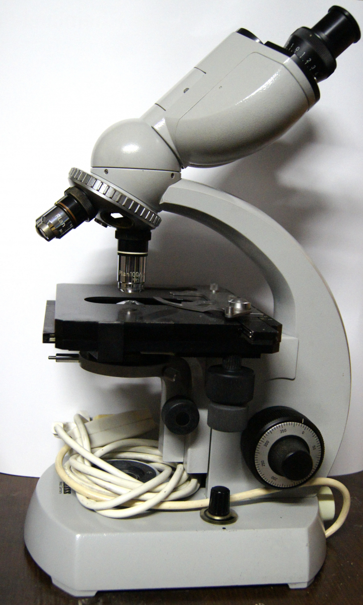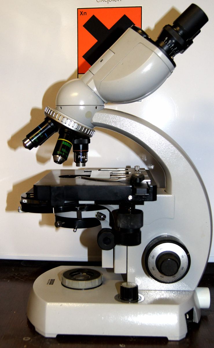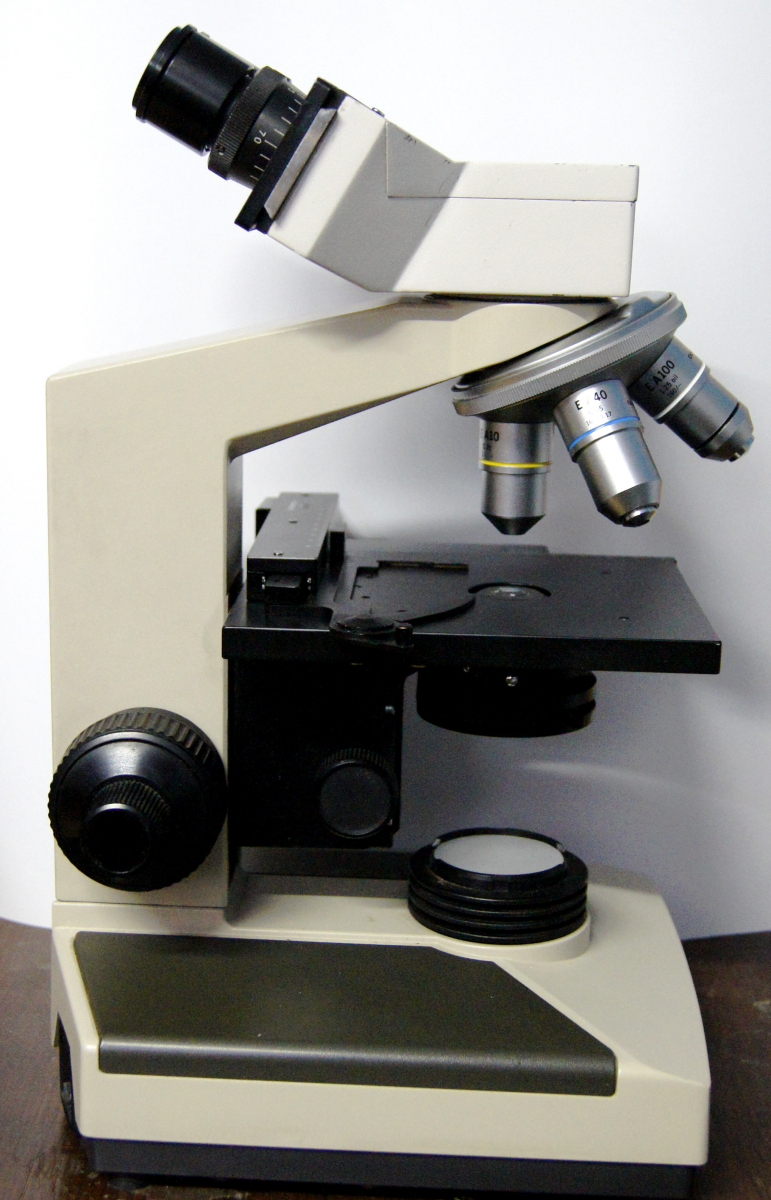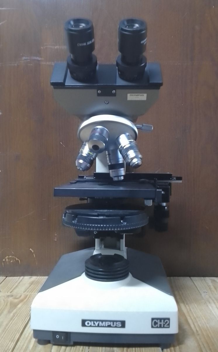 Zum Einen habe ich ein Olympus CH2 mit voll bestücktem Revolver (4er, 10er, 40er und 100er Objektiv). Es verfügt über einen Binotubus, Kreuztisch und Halogenbeleuchtung. Es ist in einwandfreiem Zustand und sehr gepflegt.