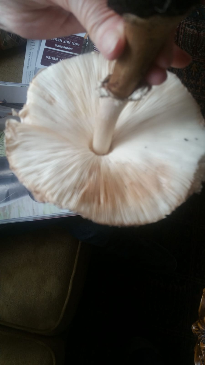 So wie Norbert schon geschrieben hat ohne den Stiel gesehen zu haben ist eine genaue bestimmung fast unmöglich. Der Stiel ist dabei sehr sehr wichtig. Wenn du Fotos vom Pilz machst dann bitte den ganzen Pilz. Dann wird die Bestimmung genauer und die Antwort zufriedenstellender.