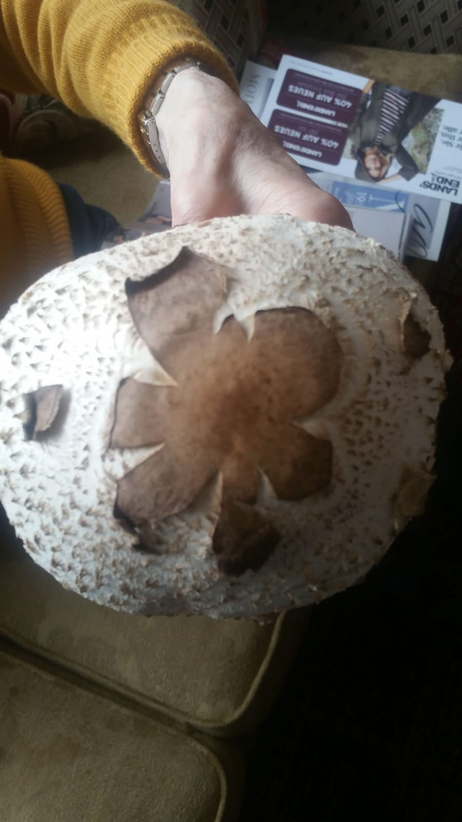 Ich habe hier einen im Garten gewachsenen Schirmpilz. Die Bilder hat mir eine bekannte geschickt ich hoffe denoch das mir jemand damit weiter helfen kann. Besten Dank im voraus.