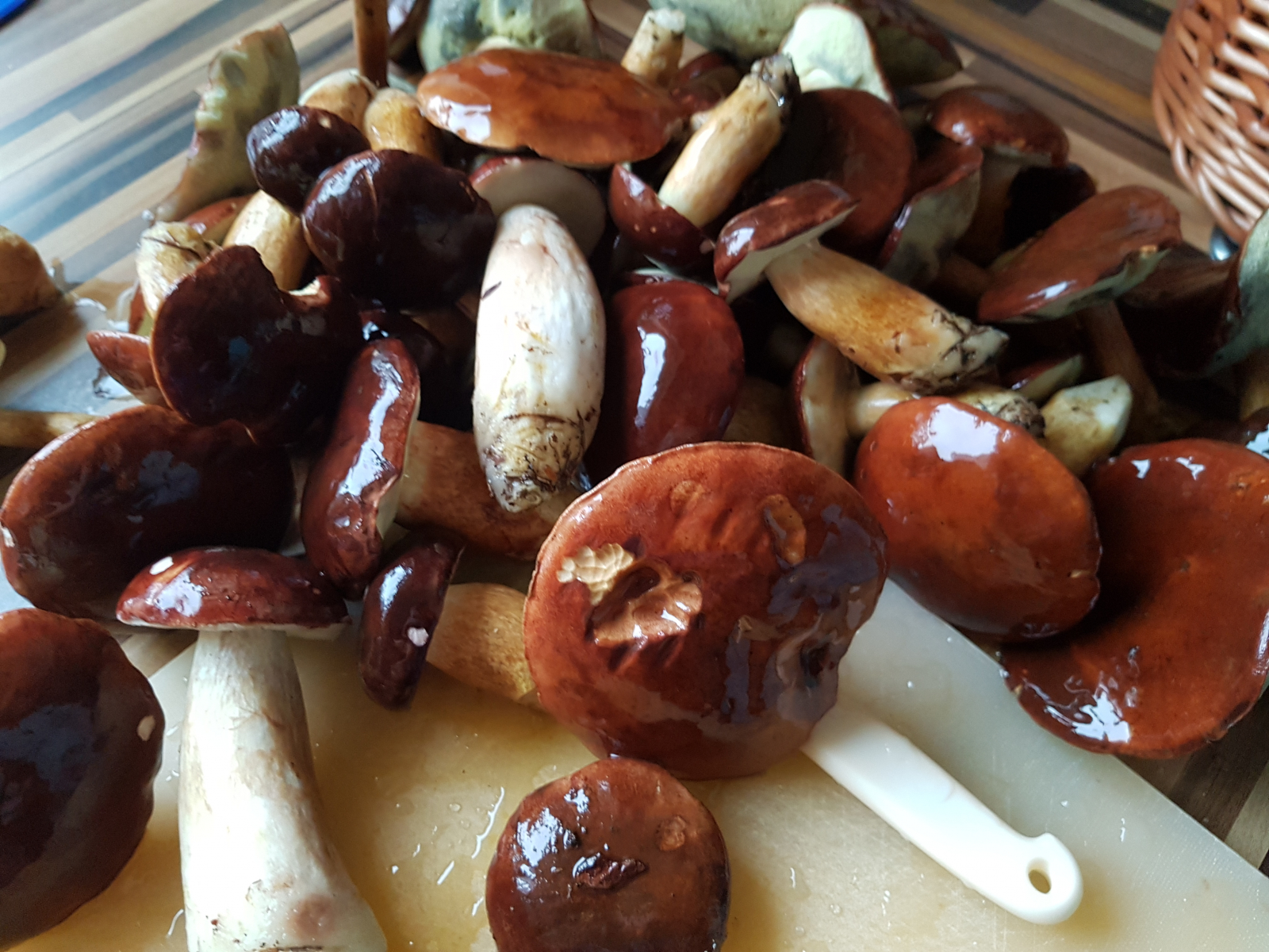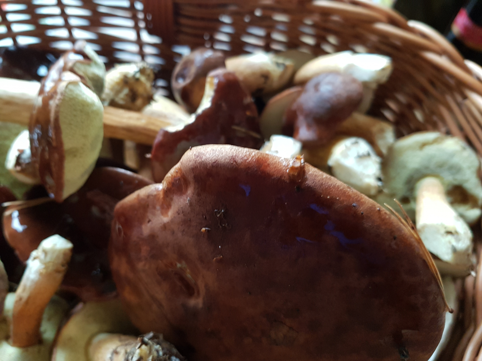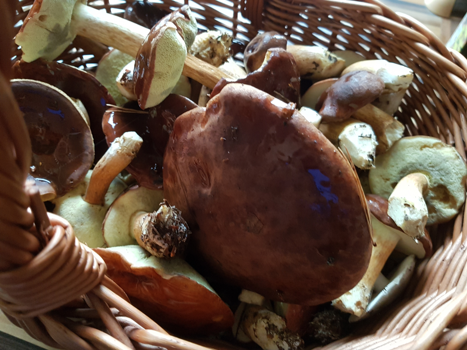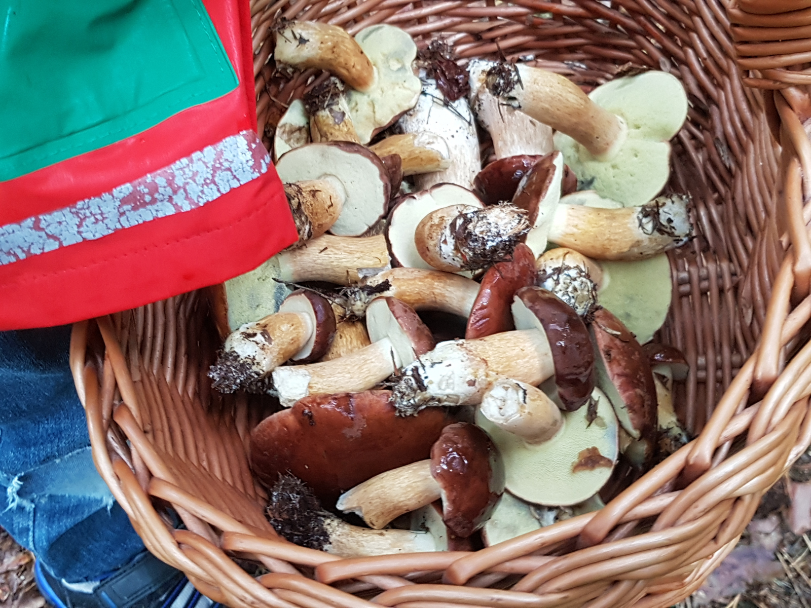 Heute hat es wieder geklappt mit schönen Pilzen hier der ganze Korb.