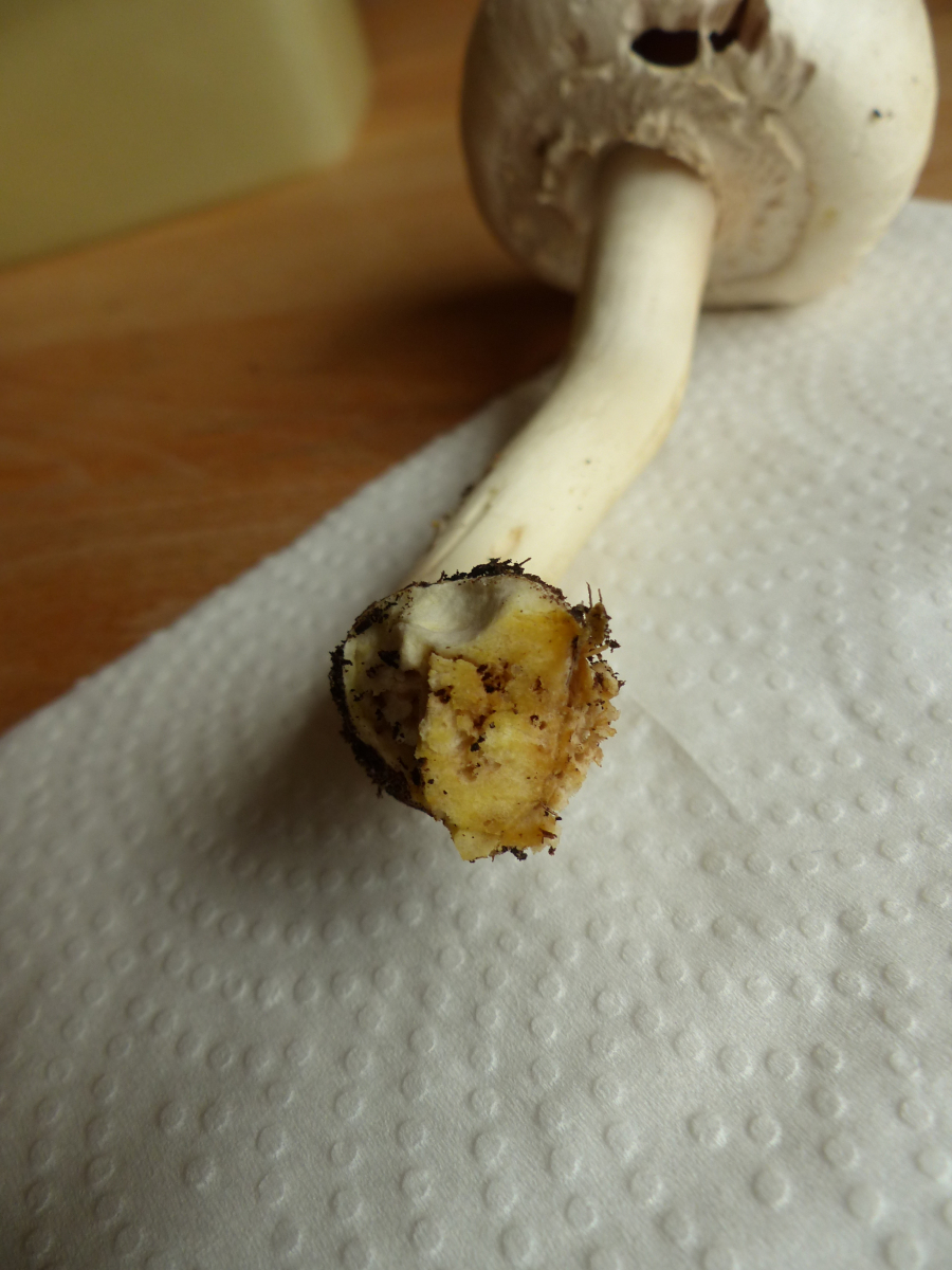 Im Schnittbild war eine leichte Rotfärbung im unteren Teil zu erkennen, aber nicht an der Stielbasis. Blaufärbung weder auf Druck noch auf Schnitt.